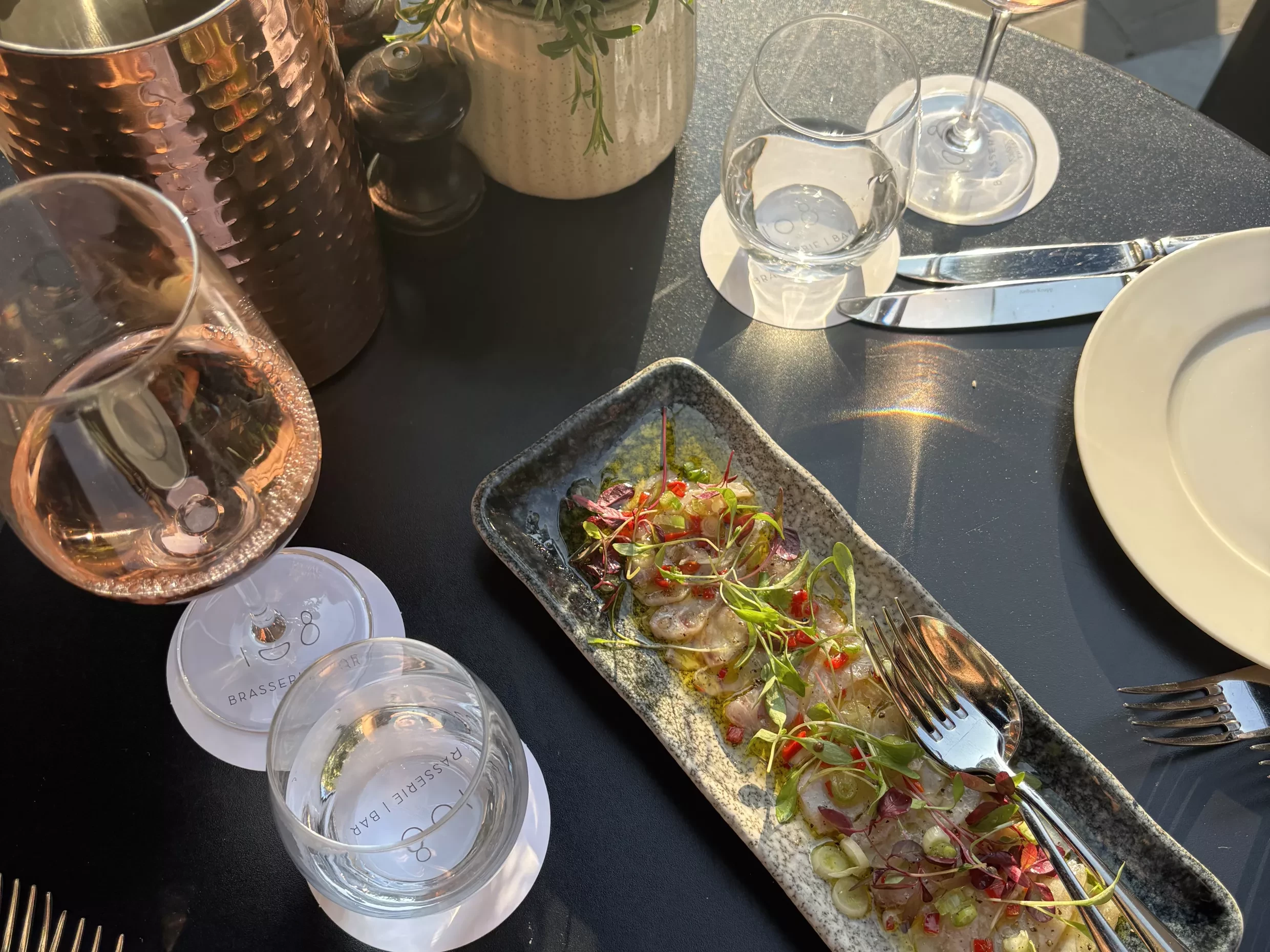 We were handed a list of rosé's and champagnes to choose from, the only beverages suitable for a city heatwave. We opted for the bottle of Grenache from Provence-based winery Maison Mirabeau. Known for its elegant rosés and sustainable practices, it comes as no surprise that the wine met our criteria flawlessly; pale, crisp, and refreshing. What's more, 108 Brasserie have partnered with the winery to create an al fresco experience that gives the south of France a run for its money.