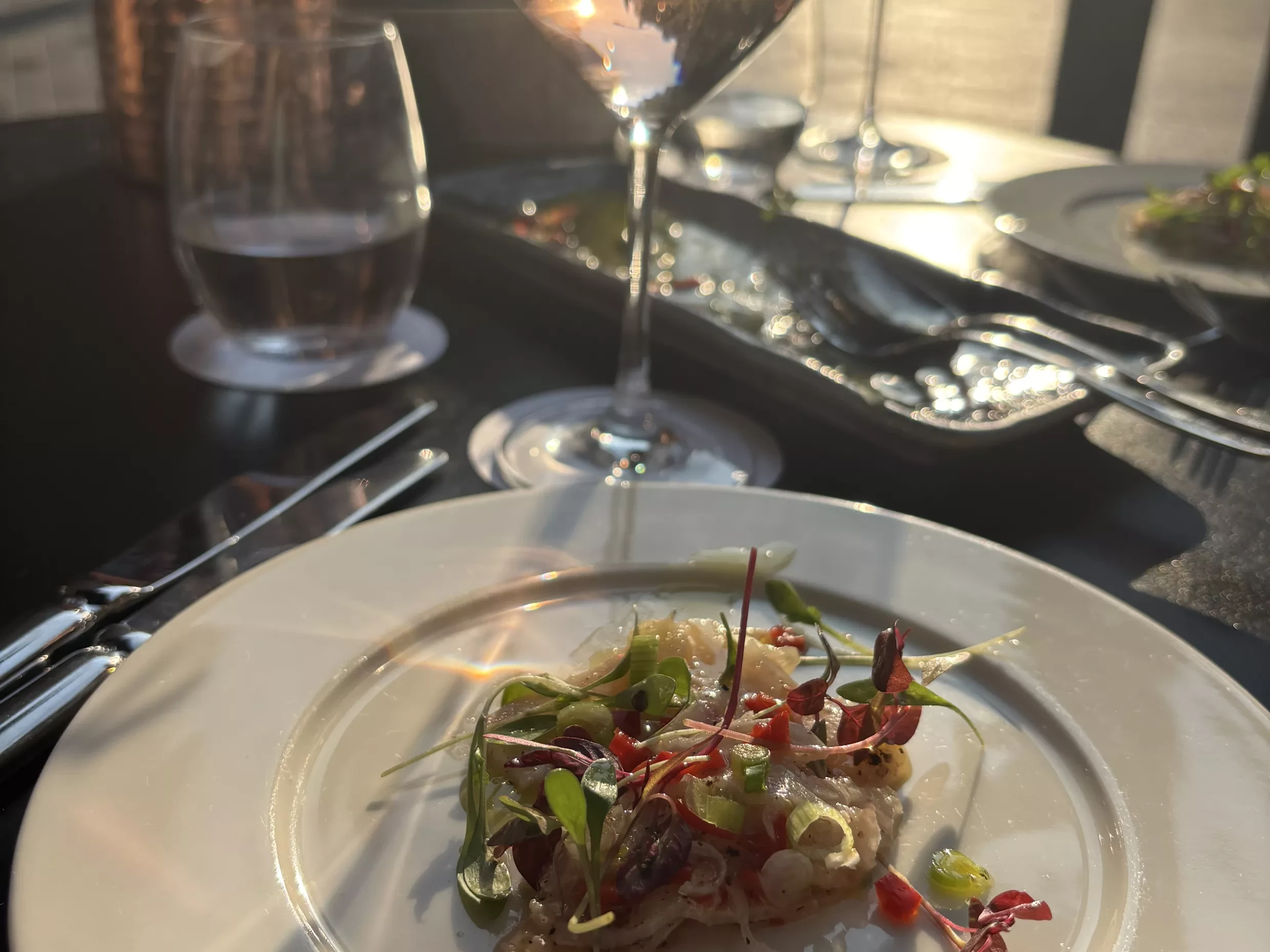 The 108 seafood platter is listed as a dish to share, and priced at £85. This might seem hefty, however, it could easily feed a party of three. Immaculately presented on a roomy plate were layers of smoked salmon, hot smoked rillette, tiger prawns, dressed white crab meat, and peppered mackerel, all surrounding the centrepiece, a mountain of creamy prawn cocktail. This came with a side of (what seemed to be unlimited, or perhaps we had a generous waiter) bread. Even the gluten-free kind. The quality of fish was second-to-none, each bite was a mouthful of fresh, salty flavours. Whilst we made a significant dent in the platter, despite three hours of sipping, nibbling, and people-watching, we simply could not conquer the feast in front of us. With our doggy bags in hand, we can vouch that for £85, you most certainly get your money's worth of food.