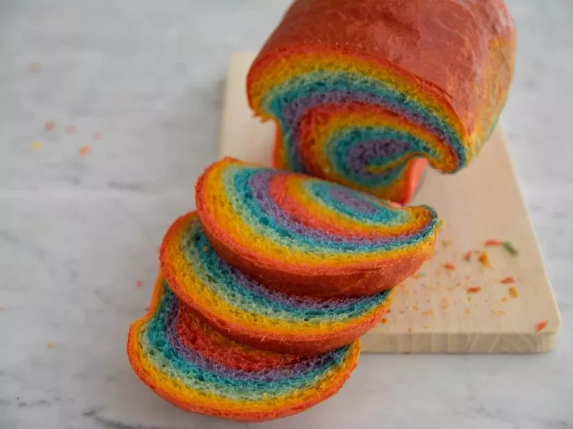 This rainbow brioche will be the star of your next meal, thanks to the rich, buttery flavour, airy texture and vibrant layers. Enjoy thick slices of this bread in a colourful sandwich, as French toast or simply on its own.
