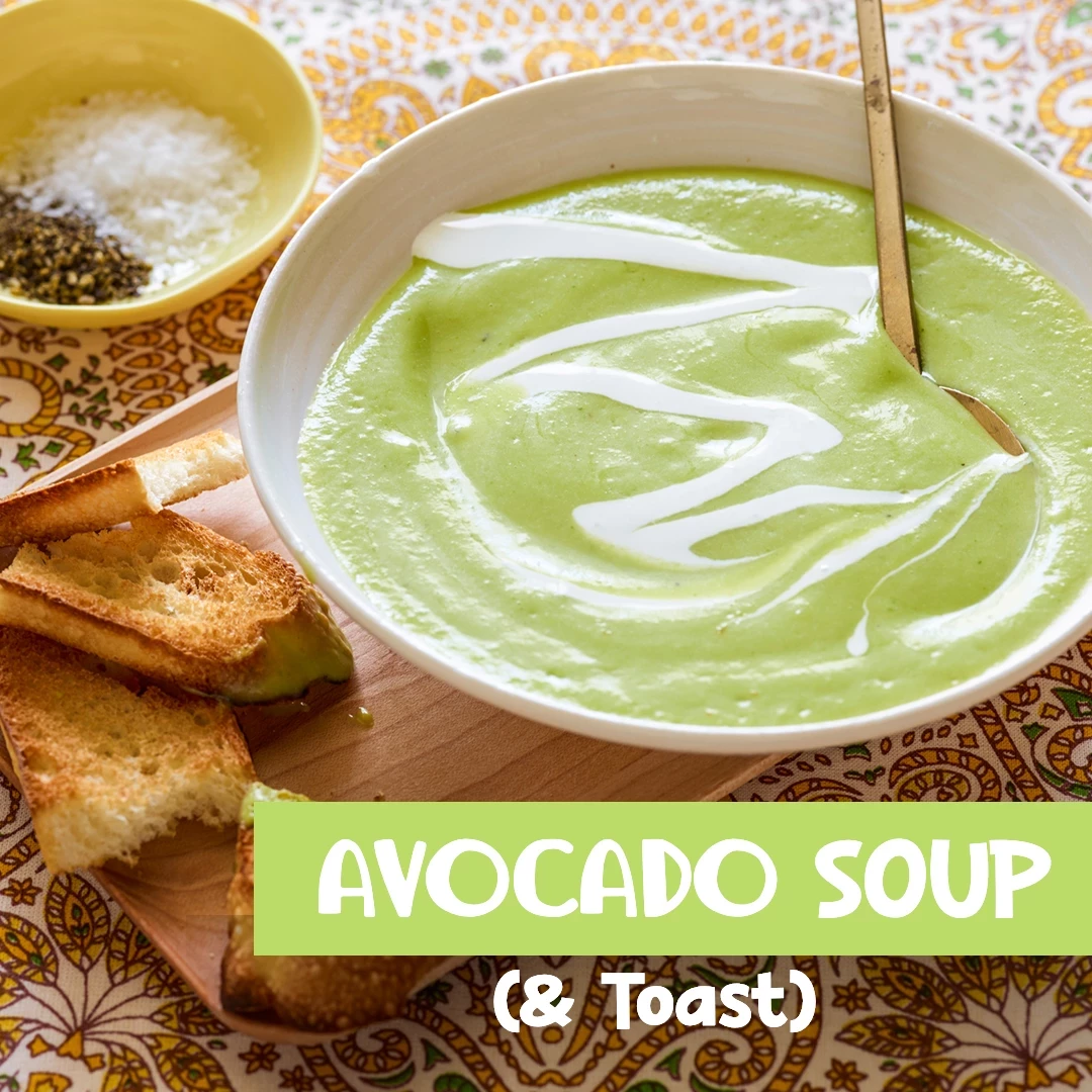 We love mushing our avocados up into a creamy guacamole- but why stop there? Blend your avocado into a luscious chilled soup and use the bread for dipping.