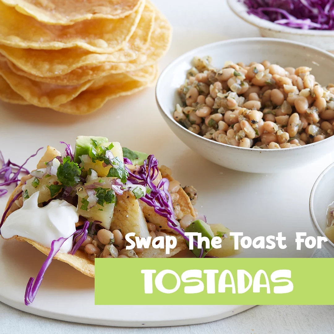 Replace boring old bread with corn tortillas, add some extra toppings (beans and shredded meat) and tah-dah! You can convert your average avocado toast into a quirky, mexican-style brunch.