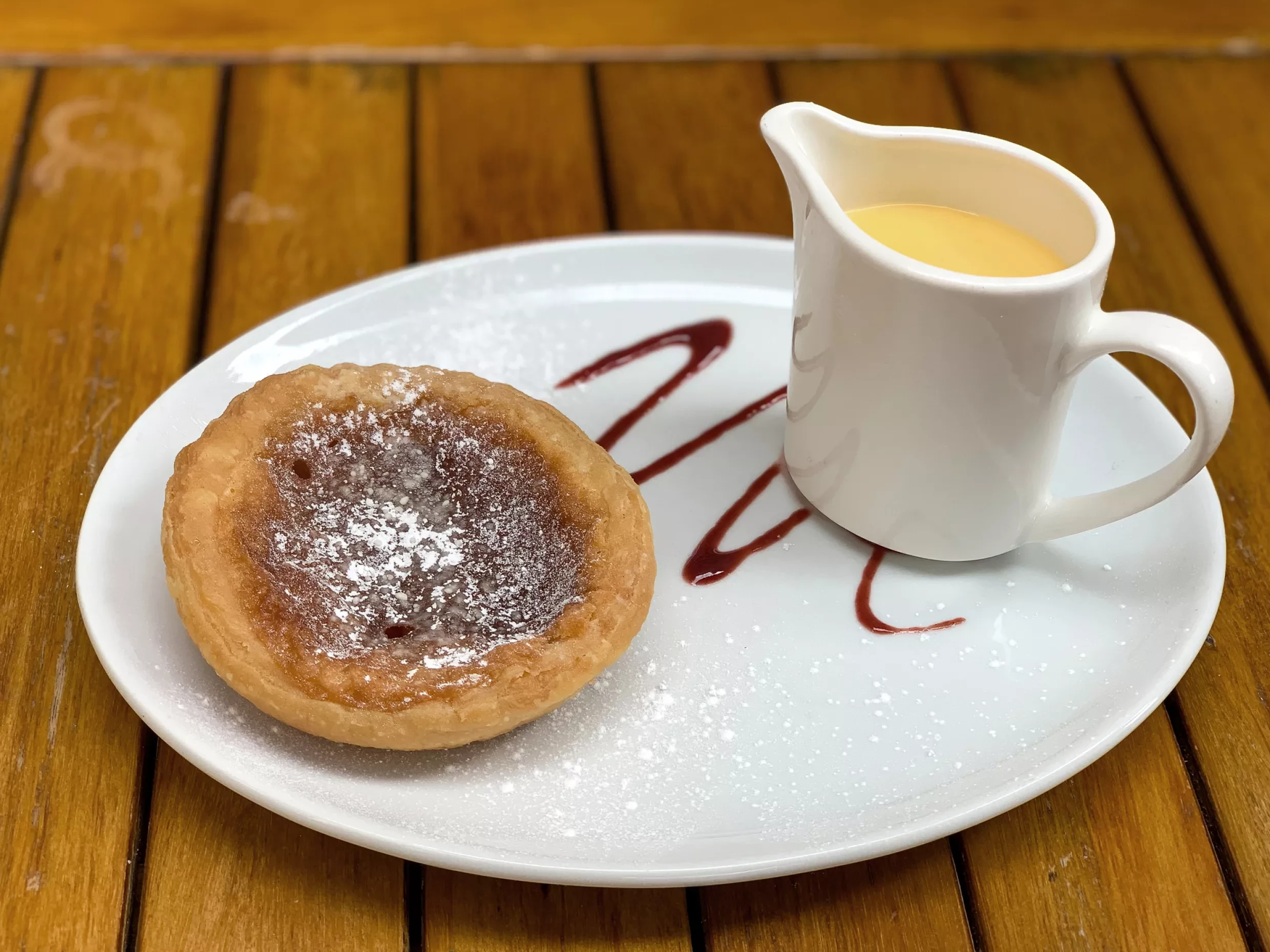 Instead of working the egg‑and‑almond mixture into the pastry as she was supposed to, the cook spread jam over the base and poured the sweet custard-like topping on top. What should have been a straightforward tart came out of the oven with a soft, set almond-flavoured custardy filling over bubbling jam. It wasn’t what was ordered, but Mrs Greaves felt like they had stumbled across something so delicious, it quickly became a house speciality rather than a one‑night curiosity.