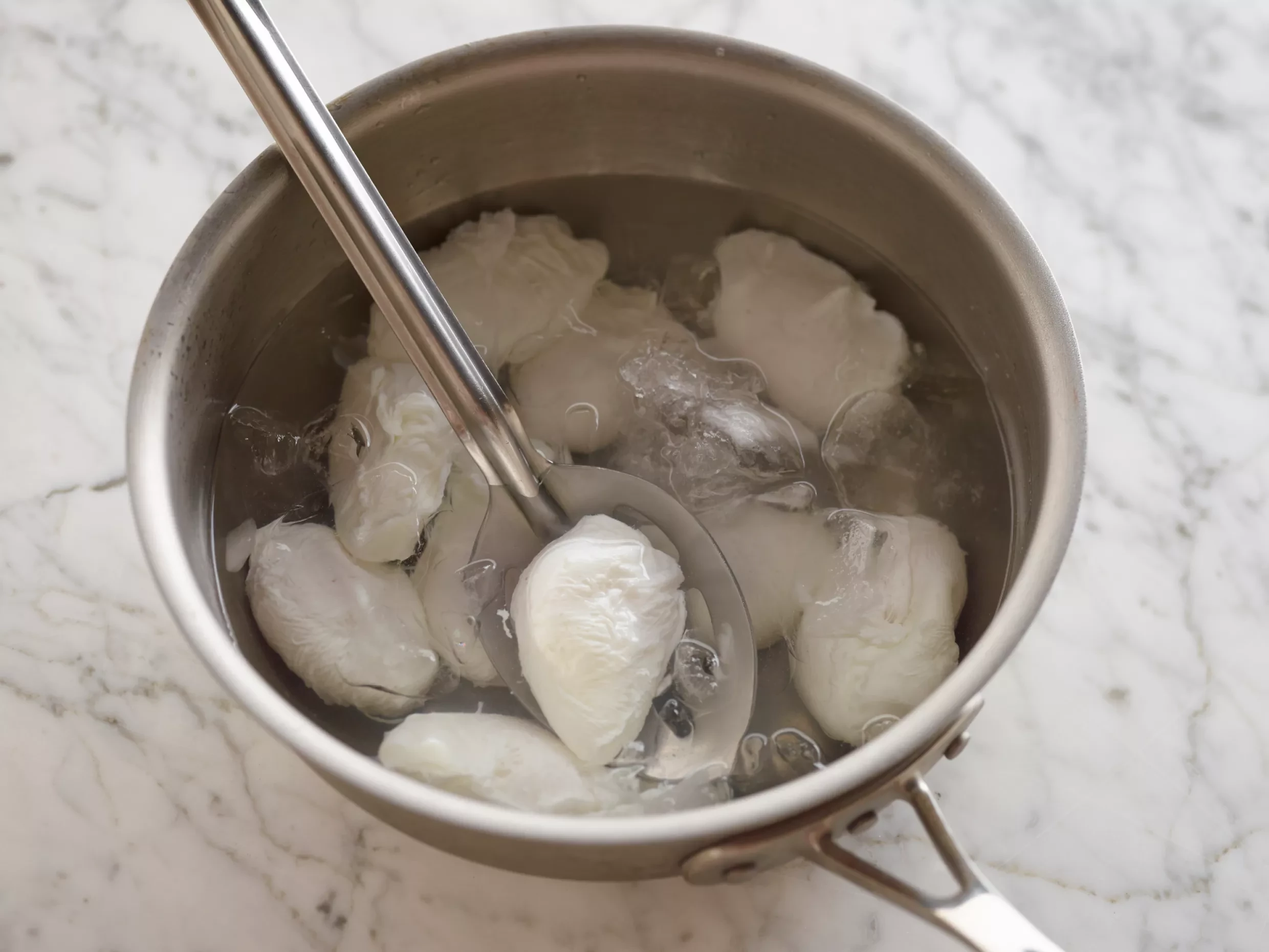 - Carefully pour the water off the egg and either eat the egg straight from the bowl or use it in a recipe.