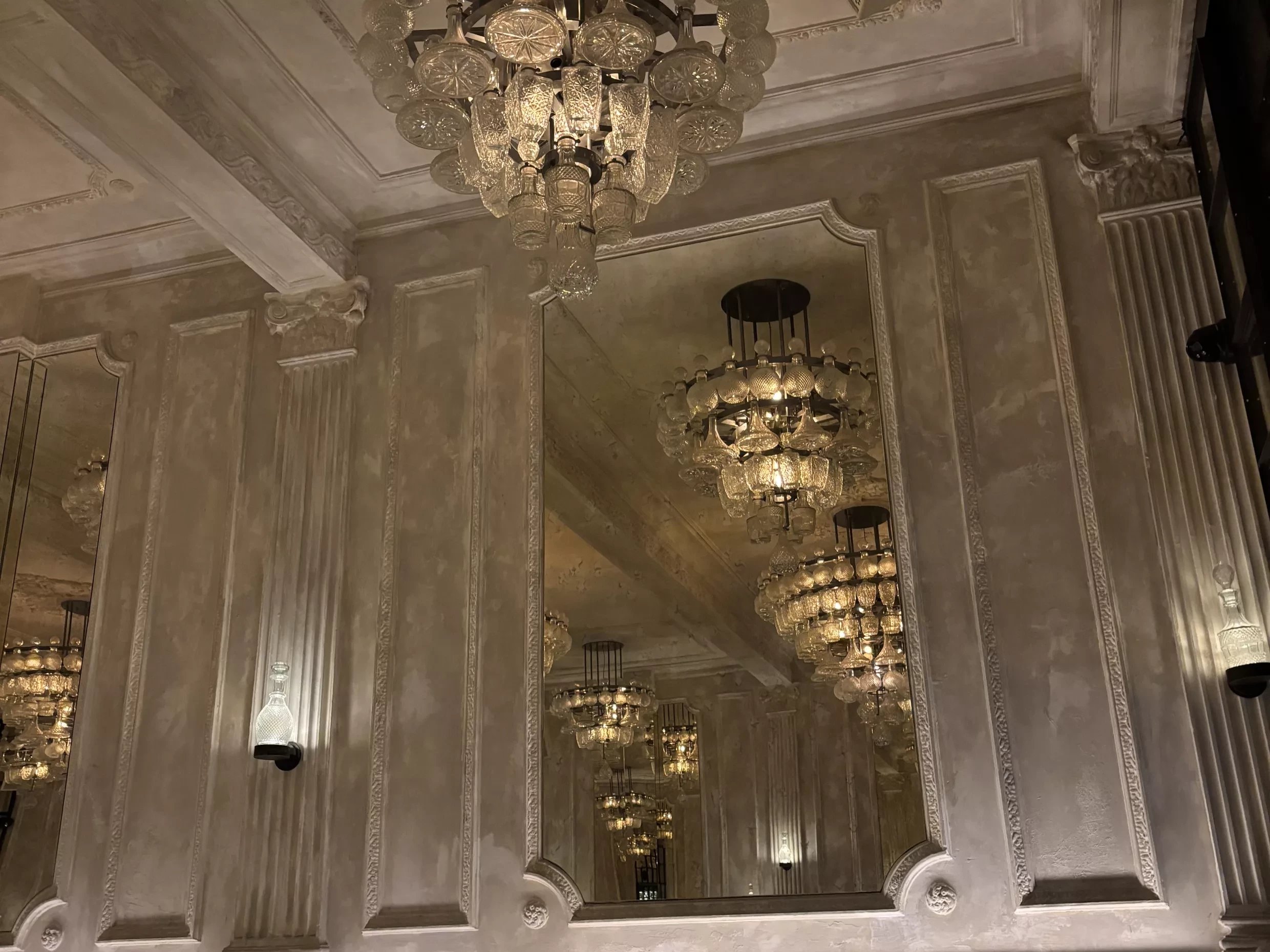 We stepped inside the double doors and into the sleek entryway, where we were met by a smiling hostess who took our coats. As we were led to our table, a half-moon booth overlooking the open kitchen, we felt as though we had somehow gained access to an elite establishment. Sucre is housed in a 310-year-old concert hall (formerly the London College of Music) and the interiors alone are breathtaking. Hanging from the high ceilings are grand chandeliers that upon closer inspection, are actually made out of over a thousand cut-glass decanters. Chairs are embellished in Aztec paterns and the lighting is low, casting a sultry glow over the diners.