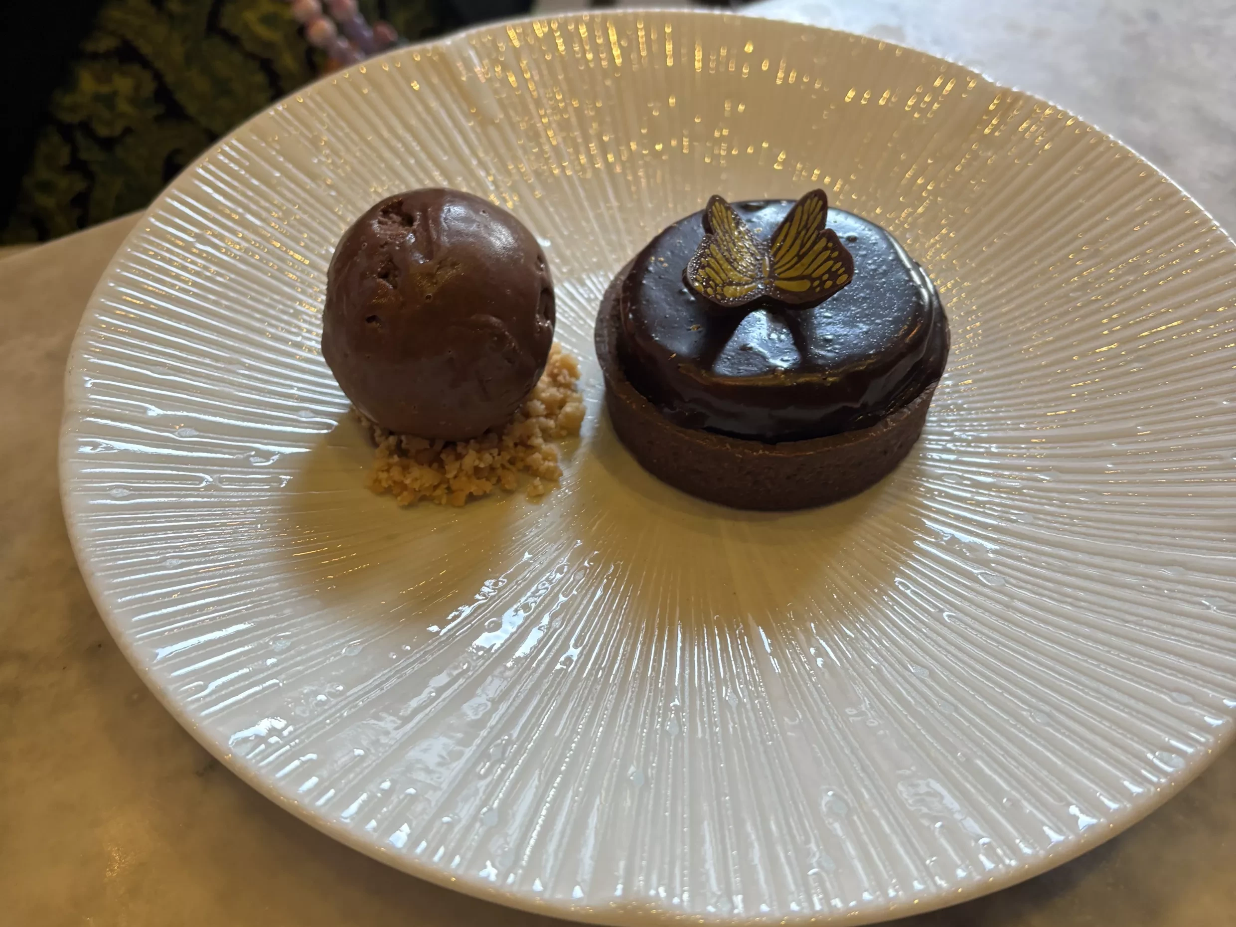 With the sun setting, it was time to wrap up our meal with an indulgent sweet treat. This came in the form of Virginia's Vice, a 70% dark chocolate tart with hazelnut cremeaux, tempered milk chocolate, and chocolate ice cream as well as a classic Vanilla Creme Brûlée with Irish butter shortbread. Our desserts were ordered with the intent of taste-testing for review purposes. In a matter of minutes, the two dishes were devoured, not a crumb in sight.