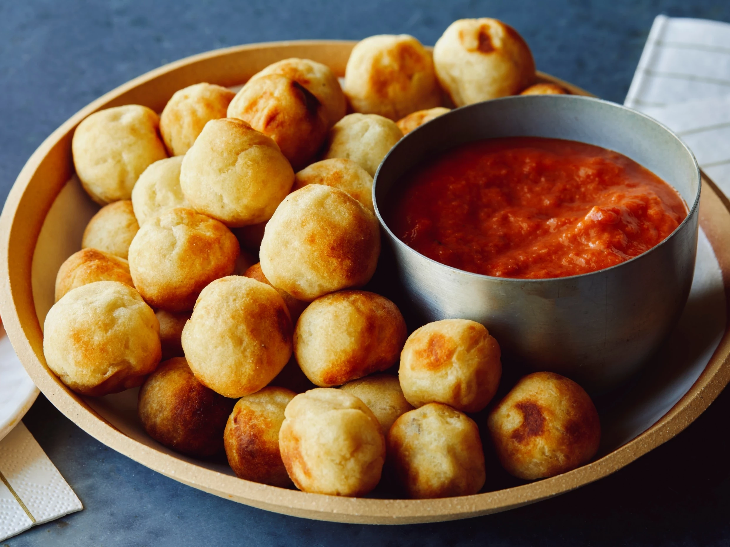 Whipped up in an air-fryer with less oil, this is one potato recipe no party repertoire should be without. The bite-sized potato puffs are amazing on their own, but the vodka dipping sauce takes them to next-level deliciousness.