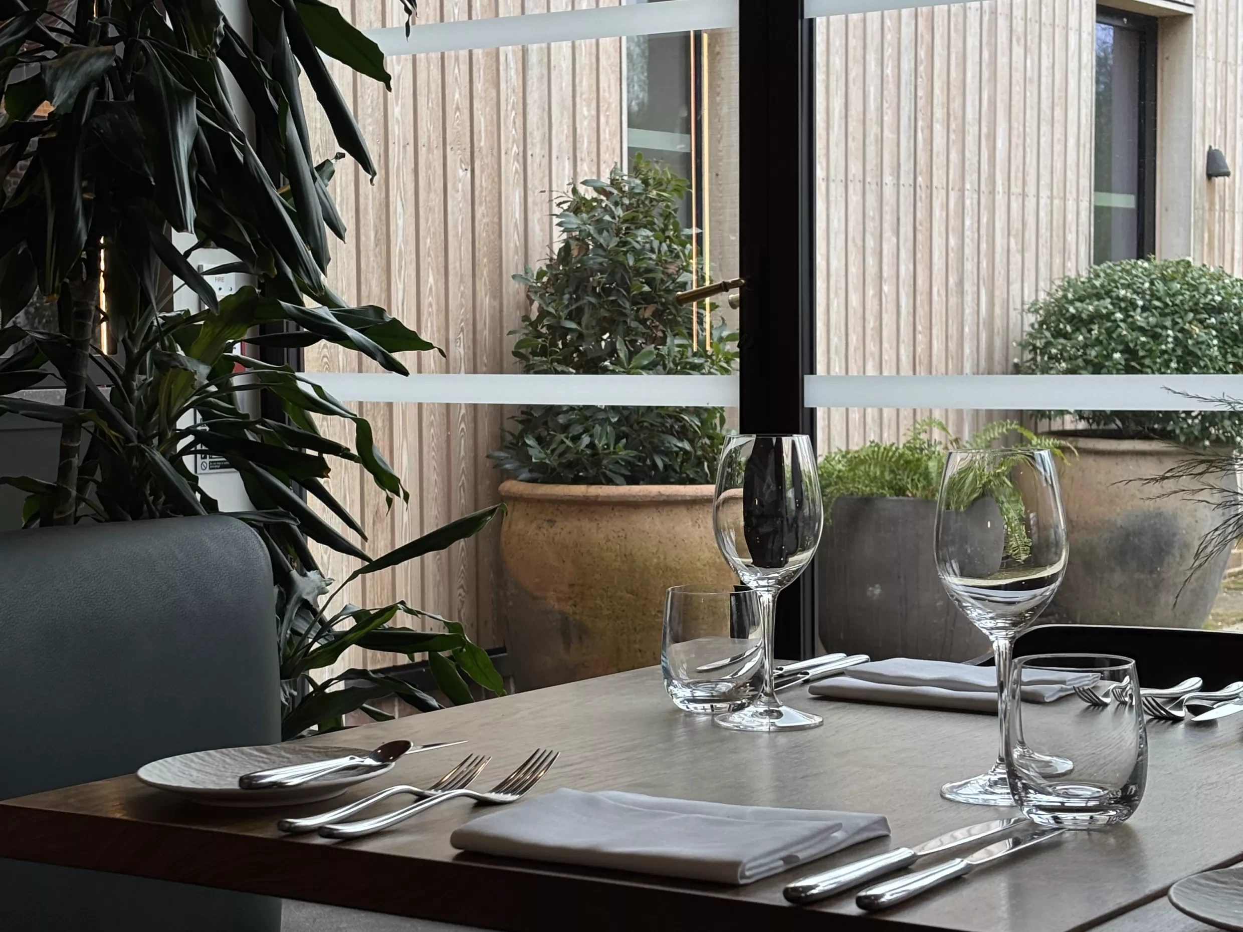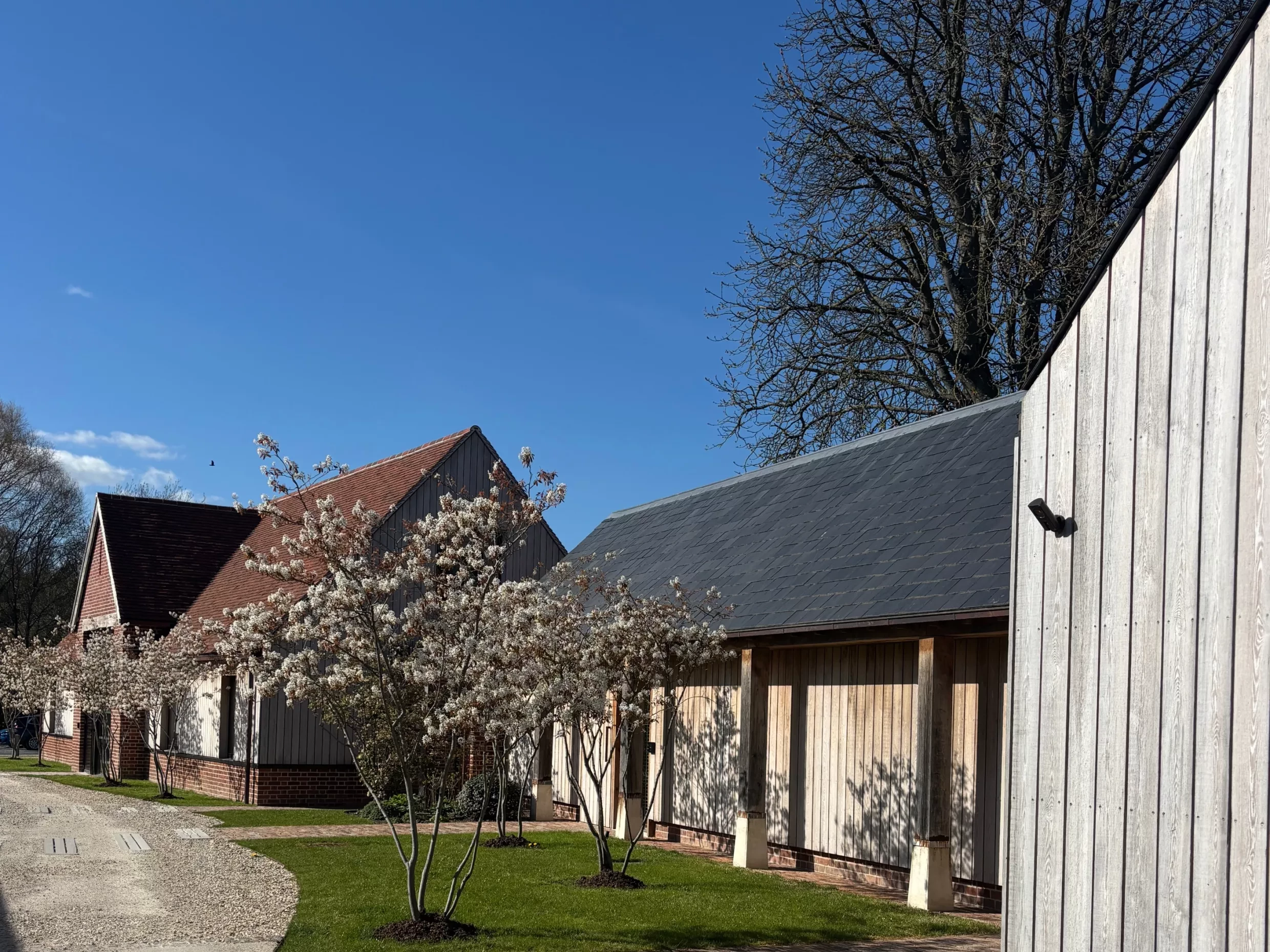 You'll be greeted by a chirpy, familiar team like a family welcoming you into their home. The place balances the warmth of a local pub with the art of unfussy luxury. The rooms are immaculately presented, with high ceilings, wooden beams, and floor to ceiling windows that overlook the cherry blossom trees outside. The bathroom is grand and sleek, stocked with delicious-smelling lotions and potions which we later discovered are made on the estate using its herbs and flowers. The pillows are perfectly fluffy, the bed is the kind that almost convinces you to skip the 10am breakfast. However, bear in mind the breakfast is not a soulless buffet but a gourmet delight which may cause a lifetime of regret if skipped, but more on that later. The Great Bustard is the type of place that instantly relieves you from any sort of stress you're subconsciously withholding. One of the reasons being its connection to nature, something that really comes to light in the restaurant, a space that has managed to please both the Michelin Guide and local farmers who have worked up an appetite.