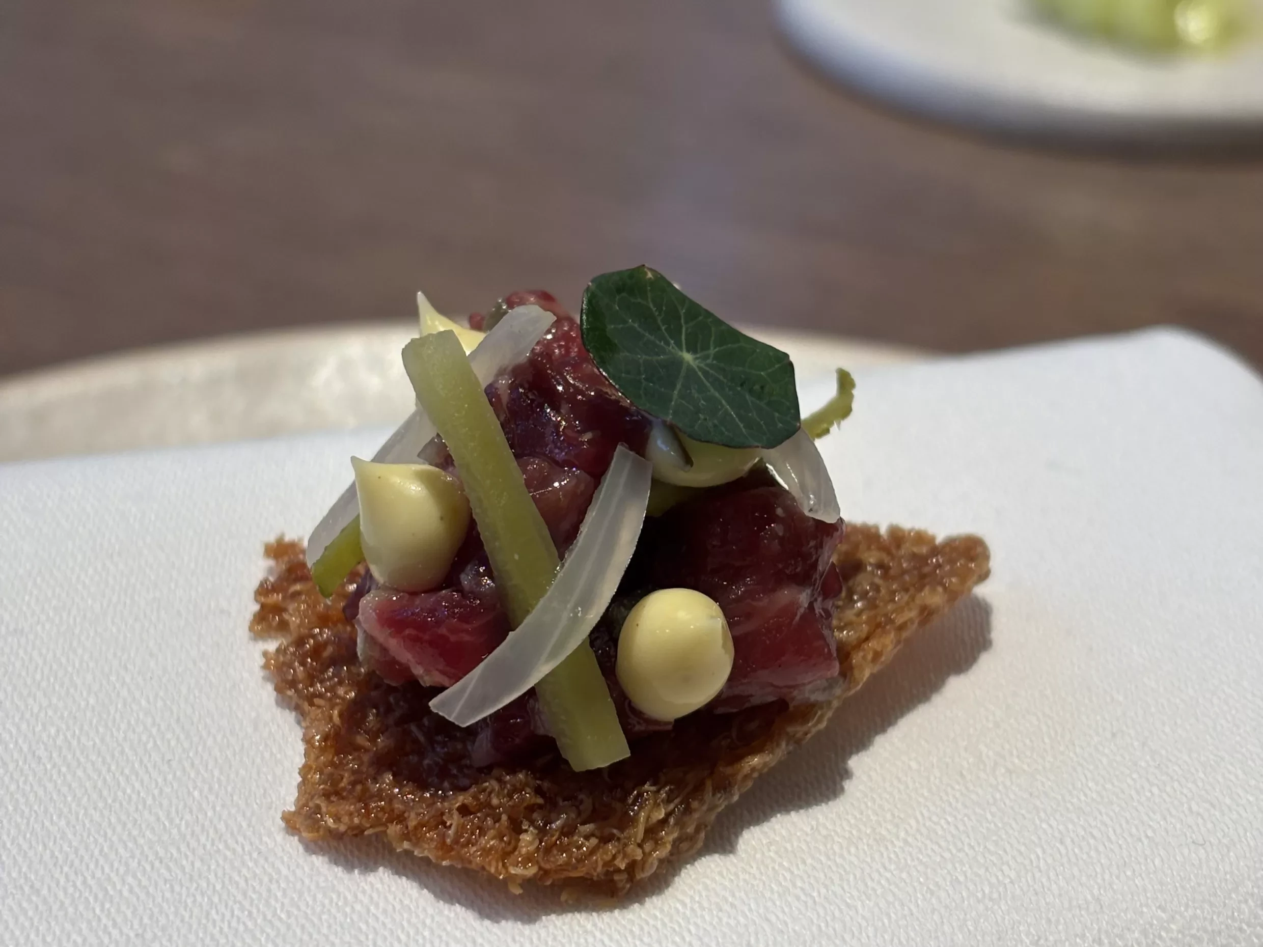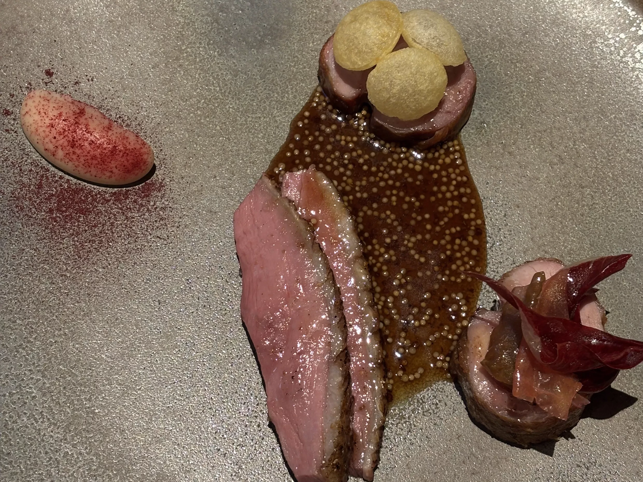What followed our bread course was a medley of pleasantly light and luxuriously rich dishes, each one exquisitely crafted and perfectly complementing its successor. Fresh langoustine contrasted with crisp pigs head, simple crisped brassicas were elevated with a luxurious vin juane sauce, and fresh, fluffy turbot was promptly followed by a slither of succulent duck and an offal ragù. Each course also has the option to be paired with a wine chosen by the sommelier, however given that we had a full working day ahead of us, we decided better of it.