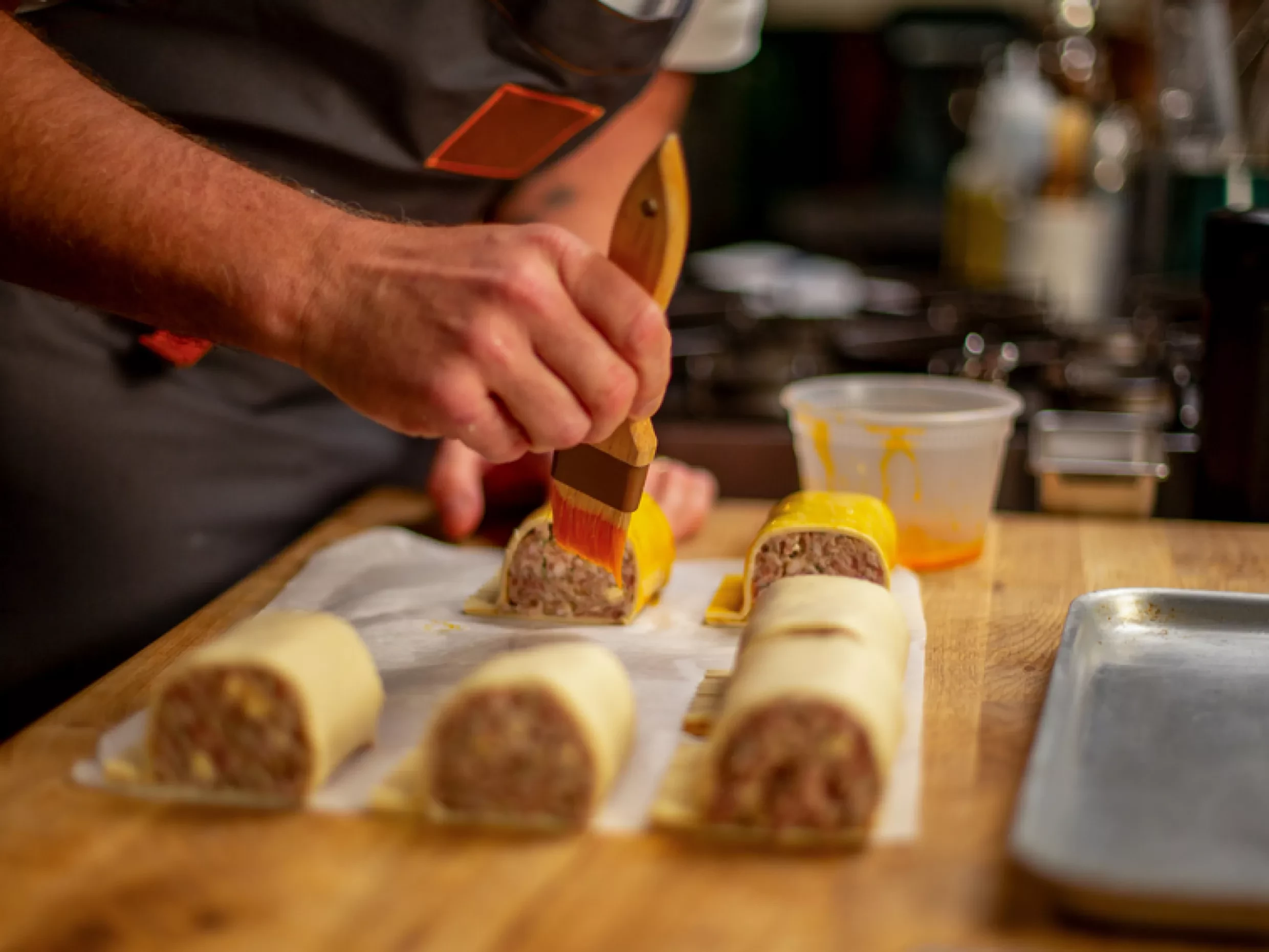 In season 2 we film a lovely little Gala pie, which is normally sliced cold with an egg in the middle, but we bake it. So, it's a bit like a cross between a warm pork pie and a Scotch egg. It's served with this sauce, which we call Matson spice sauce. Matson is the estate where I grew up in Gloucester. It’s a play on basically fish and chip shop Curry sauce, and we make it beautifully cooked out vegetables. It's absolutely delicious. Matson appears across all our pubs and restaurants, but it's something that’s based on a council estate chip shop. And I love the fact that this brilliant little area of Gloucester gets a name check on all of our menus. It's something that I'm super proud of.