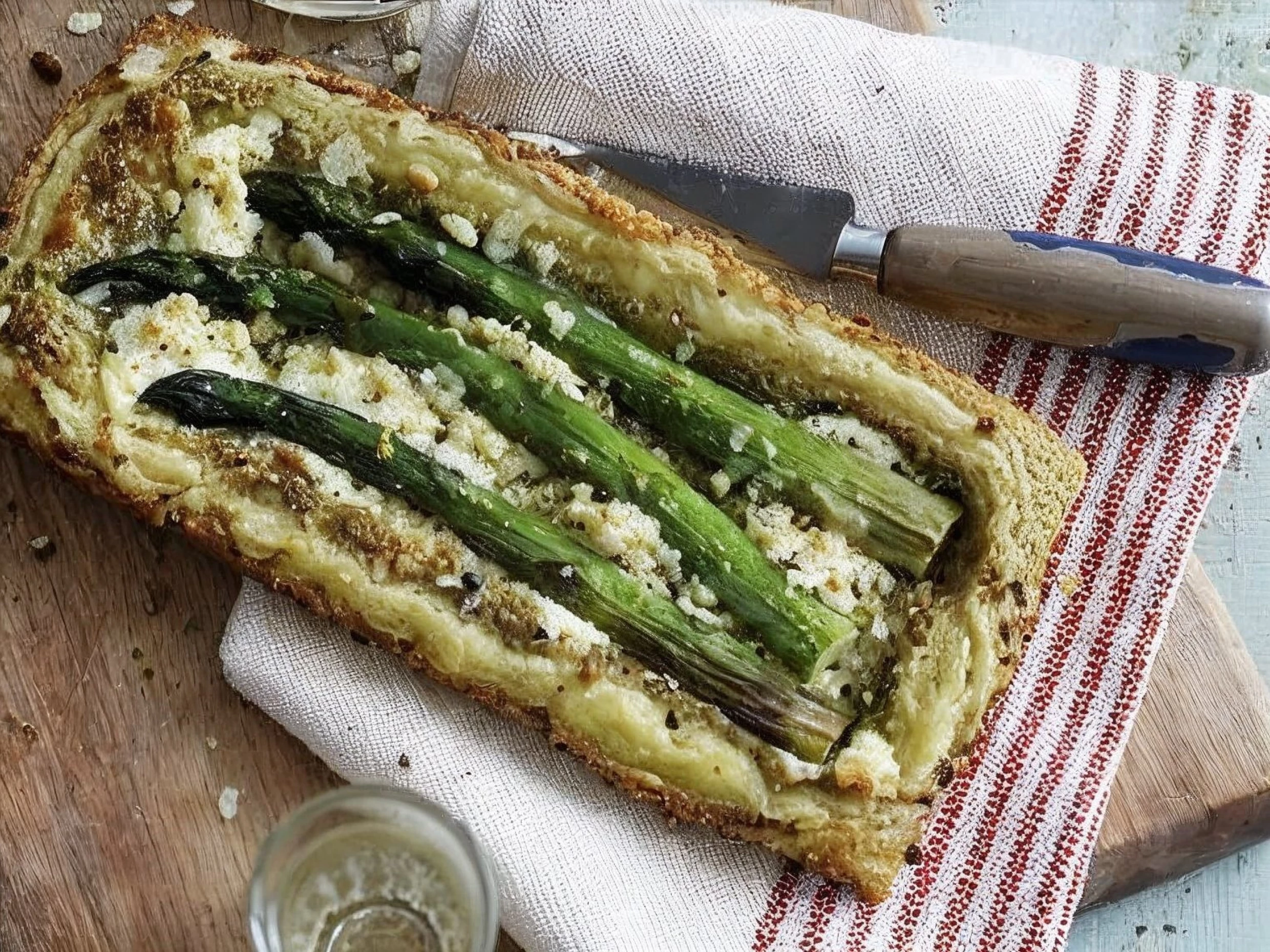 Mascarpone’s versatility knows no seasonal bounds. Here, it’s mixed with flour and eggs and punched up with lemon zest, chives and tarragon to anchor a spring-ready puff pastry tart lined with asparagus spears.