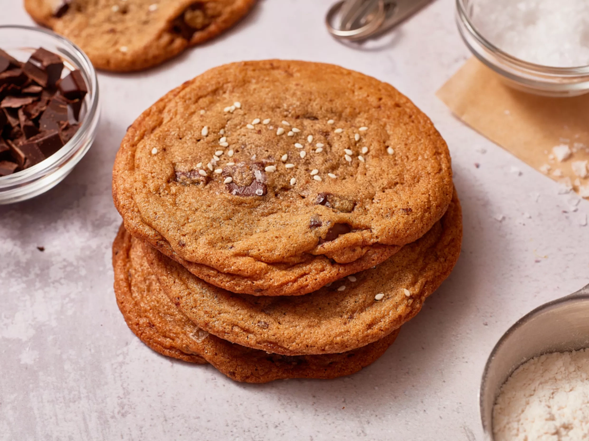 Tahini’s prowess as a baking ingredient really shines in these chocolate chunk cookies. Here, tahini brings a subtle sesame nuttiness to play off semi-sweet chocolate chunks while keeping the cookies exceptionally moist and buttery at their centre.