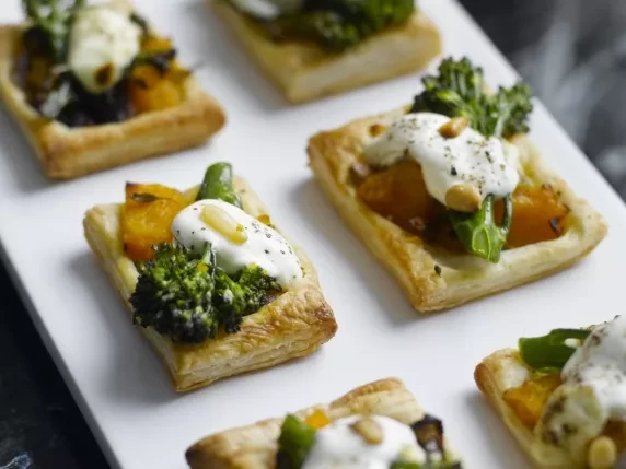 Mini Tenderstem, Pumpkin and Pine Nut Tartlets