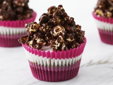 From a giant peanut butter cupcake to chocolate-covered potato chips, our American dessert ideas are serious Stateside scrumminess! A brownie bottom cheesecake, a Boston cream pie, and a key lime mousse pie are star-spangled showstoppers, and no list of American dessert dishes is complete without chocolate s’mores, a super-cool ice-cream layer cake, or truly indulgent Pacific Northwest blackberry-filled doughnuts with white chocolate ganache and toasted hazelnuts. Banana splits with an easy chocolate sauce, and dark chocolate brownie pops, are kid-friendly fabulousness, while a no-churn strawberry cheesecake ice-cream goes well with just about anything! Our American dessert recipes are decadent and delicious!