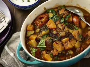 Get ready to delve into an exotic oasis of diverse flavours, textures and ingredients with this collection of sumptuous Middle Eastern main course dishes. Our Middle Eastern main courses take you on a culinary journey around these ancient lands, where traditional tastes and contemporary cuisine meet head-on. Whether it's Babganoush-hummus pasta or Iranian stew and pan-fried lamb chops with harissa, there's a great selection of easy midweek meals. Jazz up Sunday roasts with a stuffed leg of lamb, Middle Eastern style, and nothing says party food like organic mini lamb koftas or crispy falafel chicken! As authentic as they are scrumptious, our Middle Eastern main courses are a mezze of magical meals.