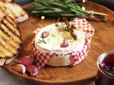 Take your Christmas charcuterie board to new levels with this warmed brie paired with a crunchy crumble.