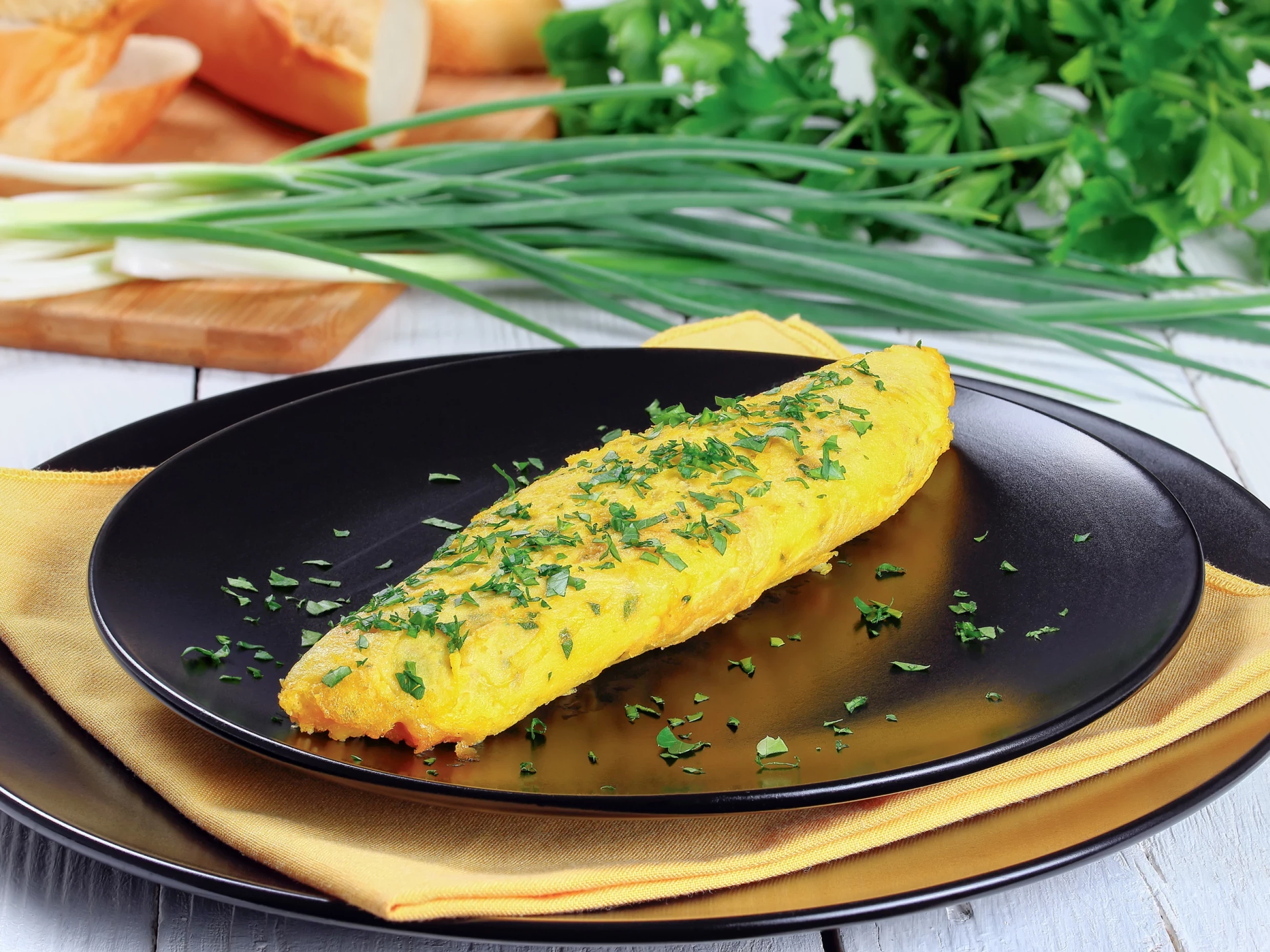 Whip eggs up, the classic way, for a breakfast dish that's satisfying on its own or with whatever fillings you have on hand (cheese and herbs are always a safe bet).