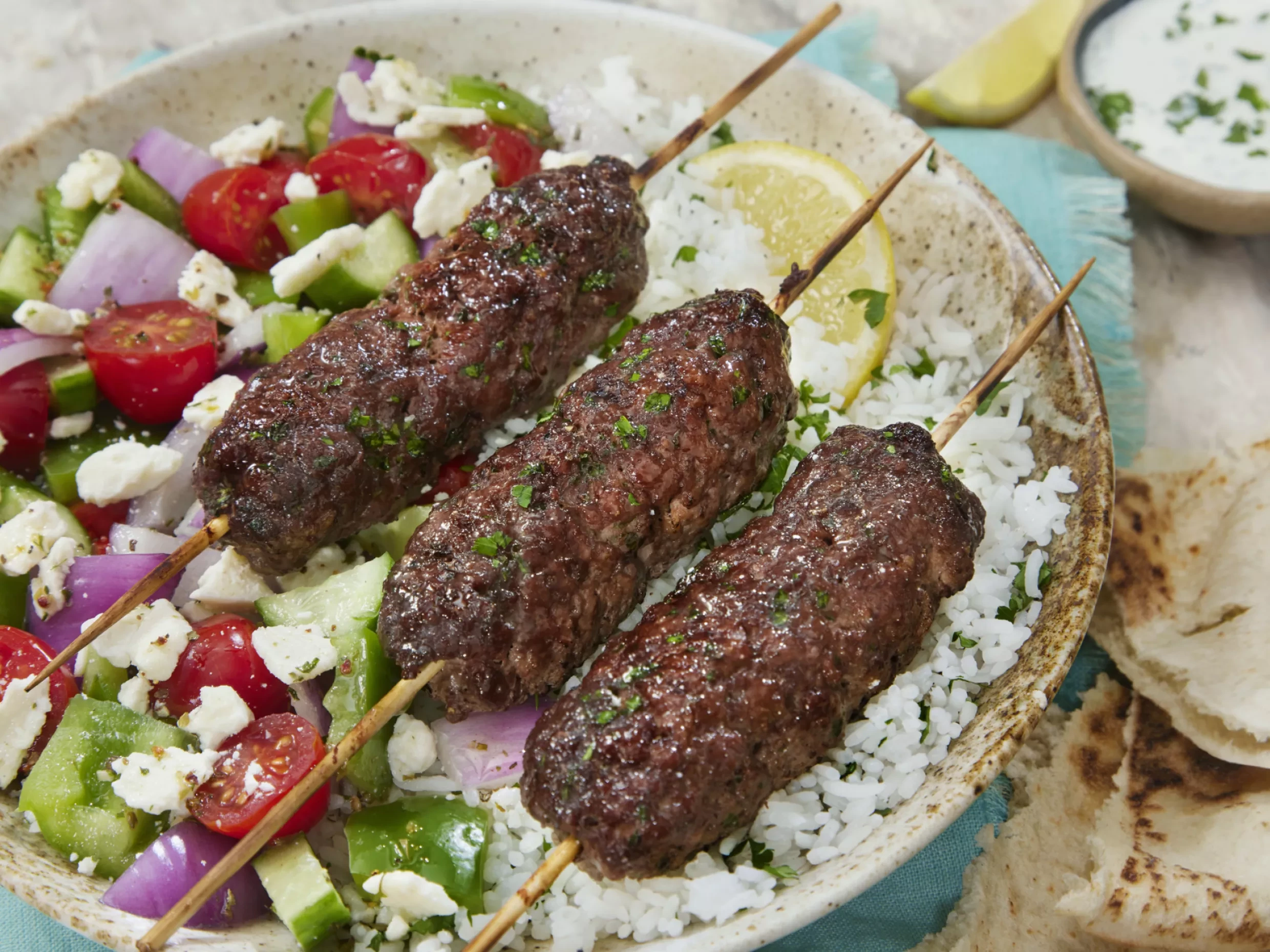 Guy decided to create a little take out competition. In this episode, the dish that really stood out is a kofta kebab with fattoush salad.