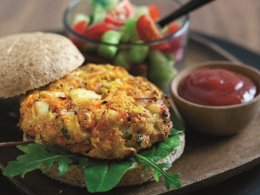 Wild Alaska salmon, carrot and halloumi burgers