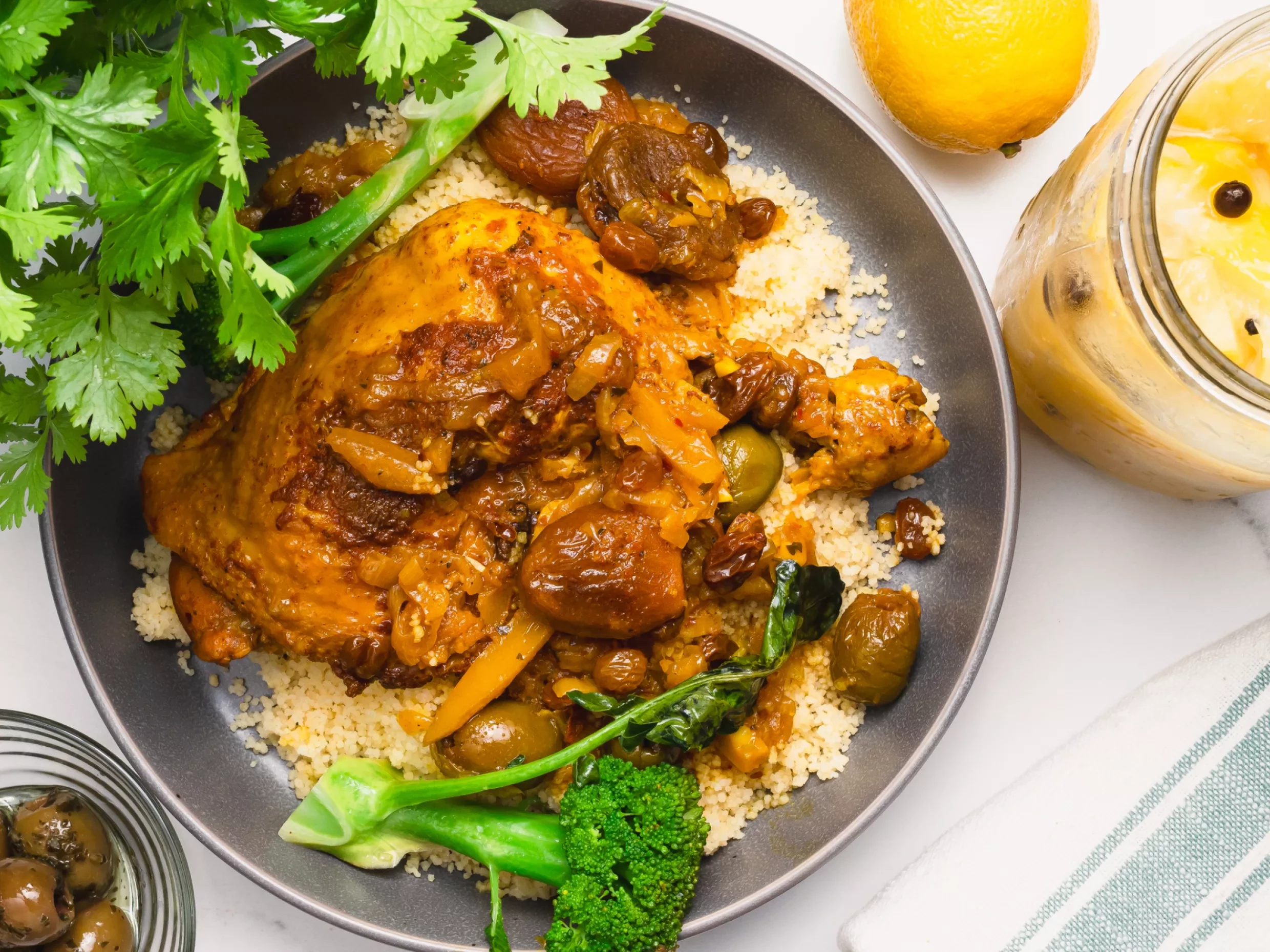 Couscous-stuffed chicken breast with feta, sun-dried tomatoes and kalamata olives