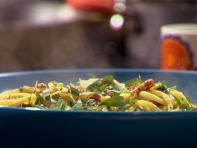 Sophie Grigson has moved to Puglia, and gets to enjoy an authentic stuffed aubergine recipe with her Italian neighbour before making a light lunch ahead of siesta time.