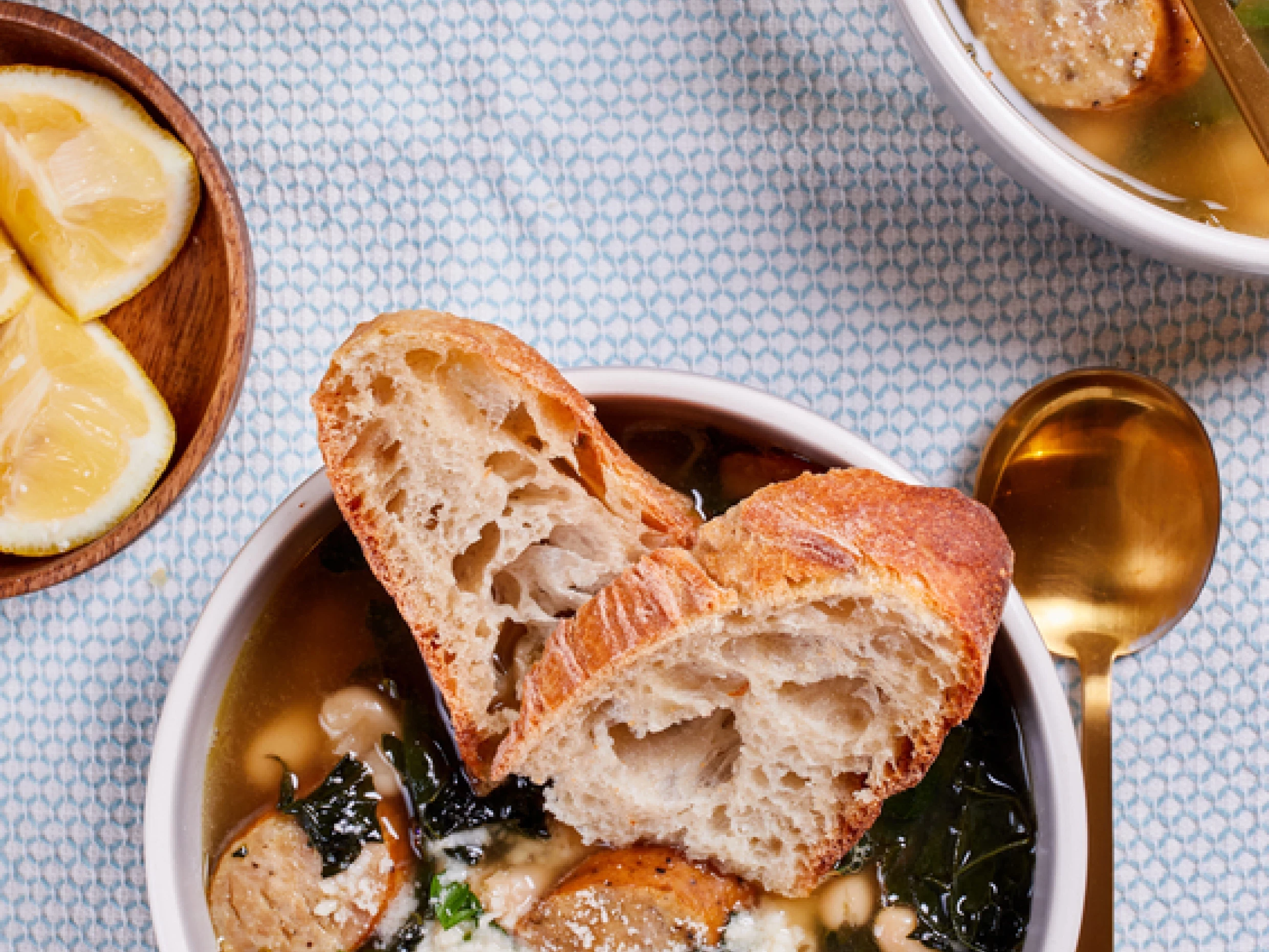 Cannellini bean soup with kale and garlic-olive oil crostini