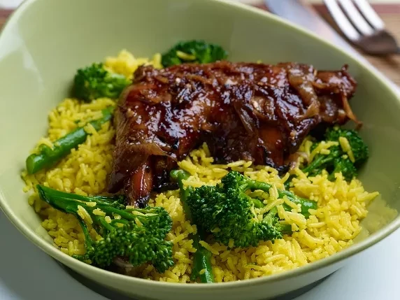 Indonesian Braised Chicken in Sweet Soy Sauce with Tenderstem Coconut Rice