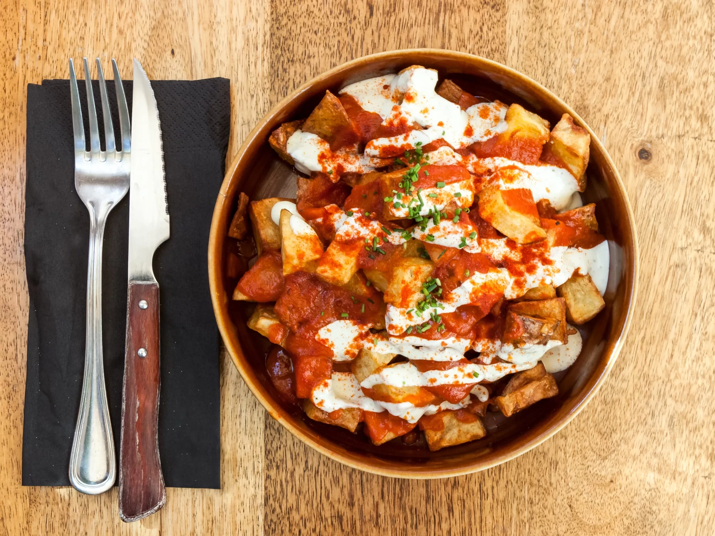 A traditional tapas dish of potatoes and spicy mayonnaise is a simple delight.