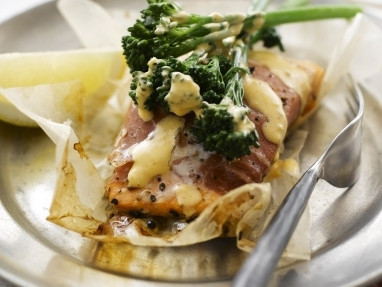 Tenderstem Broccoli and Salmon Parcels With Spicy Moroccan Butter Sauce