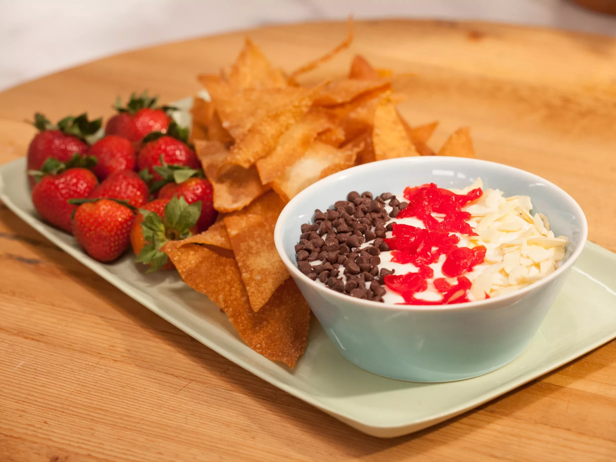 - For the filling: In a medium bowl, whisk the ricotta until smooth. Sift in the powdered sugar, cinnamon and allspice. Mix to blend. In a separate bowl (or in the bowl of an electric mixer fitted with the whisk attachment), beat the heavy cream until fairly stiff. Using a rubber spatula, gently fold the cream into the ricotta mixture. Stir in the chocolate chips. Lightly zest the exterior of the lemon and stir it into the ricotta. Refrigerate for a half hour to an hour.