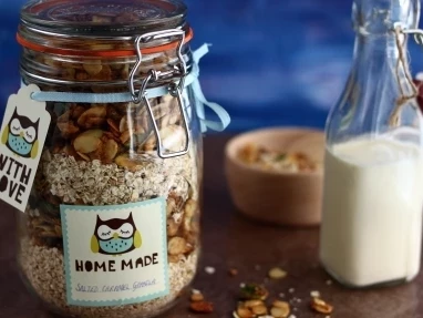 - In a large clip-top Kilner jar, you can either layer up the oats with the cooled nut mixture or mix them both together and fill the jar ready for gifting or stowing away for a special occasion. This is perfect for Christmas breakfast.