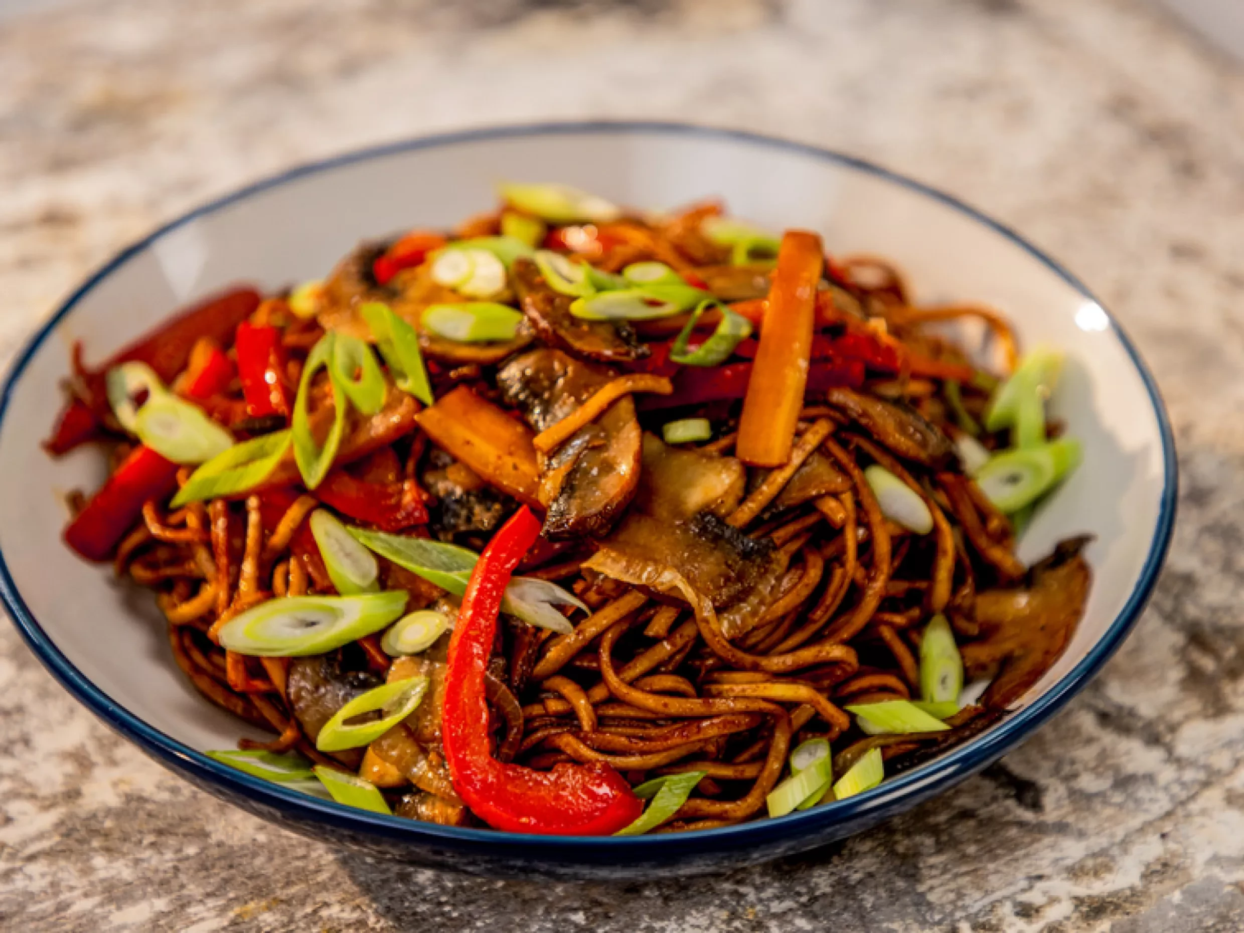Asma's Mushroom Hakka Chow serves four, and can be quickly rustled up on a busy week-day! With a sweet and salty seasoning, this is one meal the whole family can get on board with.