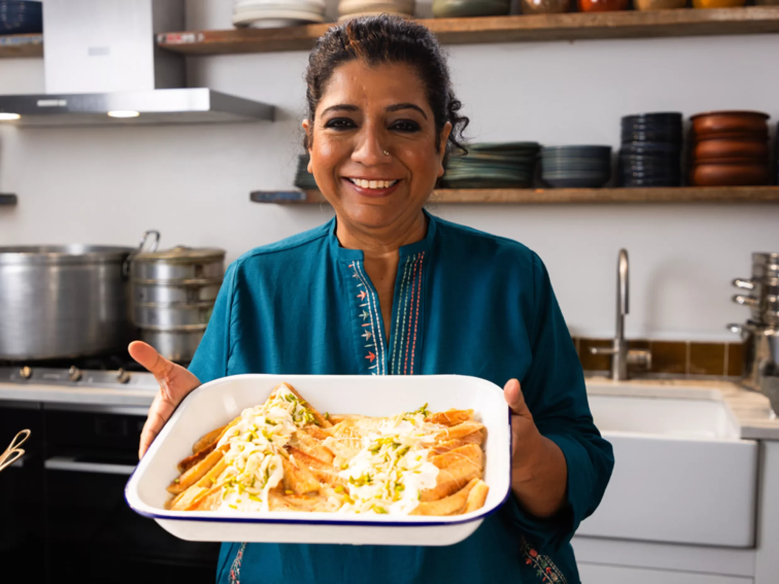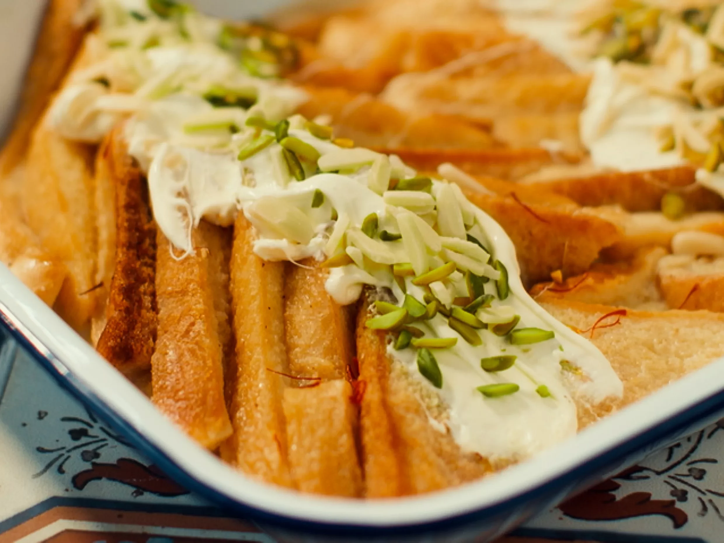 Bread is fried in melted butter to make Asma's Shahi Tukra, a traditional Indian pudding!