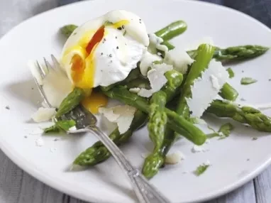 Asparagus with Poached Eggs and Parmigiano Reggiano Sauce