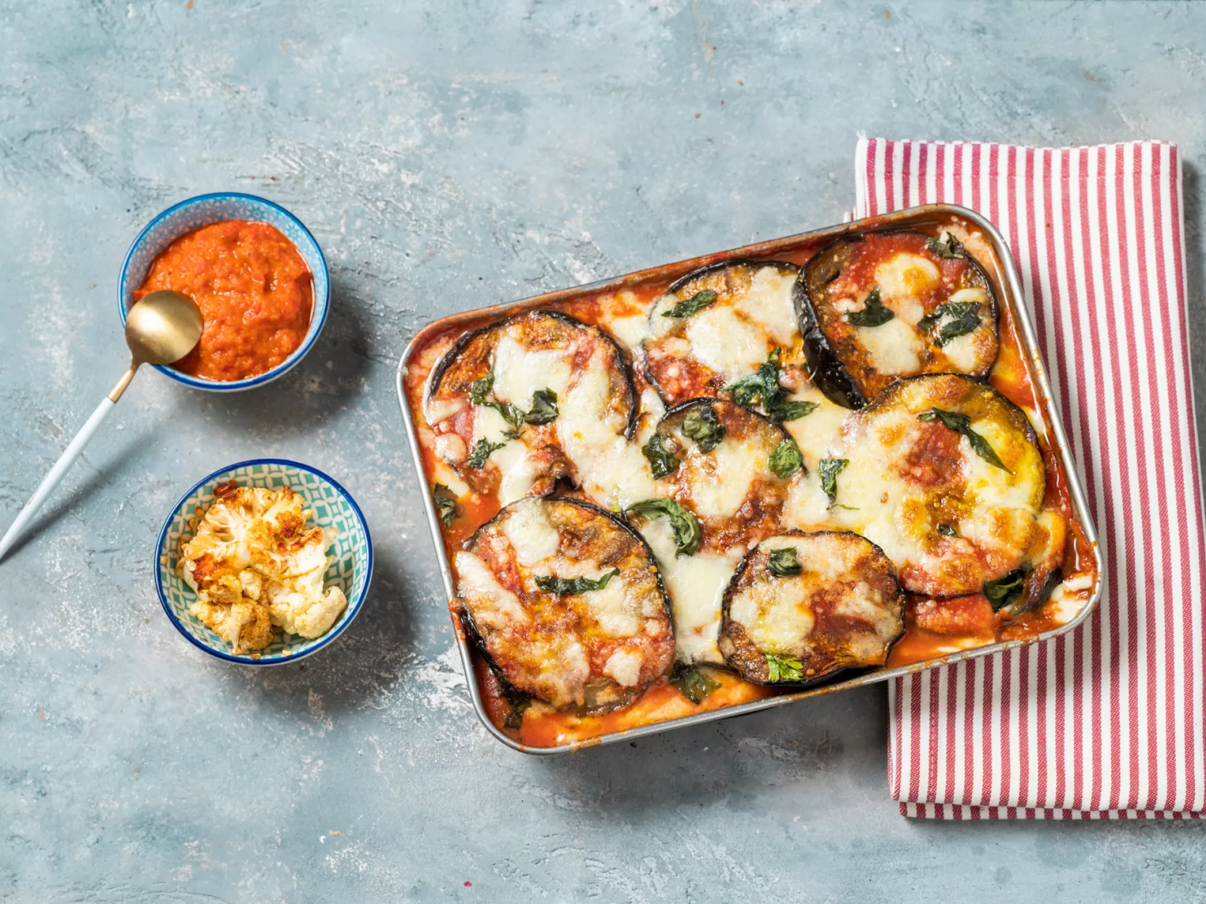 Is aubergine parm the ultimate comfort food? Perfect for weeknight family dinners, this dish is a delicious layered bake of tender aubergine slices, rich tomato sauce, and lots of oozy Parmigiano Reggiano cheese. With an aromatic blend of garlic, thyme, and basil, this aubergine Parmigiana recipe is a symphony of classic Italian flavours that will transport your taste buds to the sun-soaked Mediterranean coast.