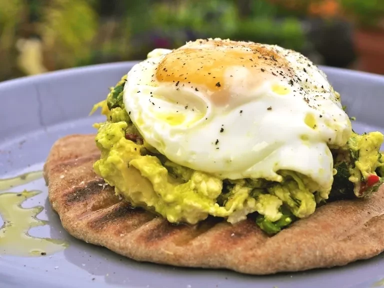 Make sure the avocado mix is seasoned with salt and olive oil, and then spoon onto the flat bread. Place the fried egg onto and a lemon wedge on the side.