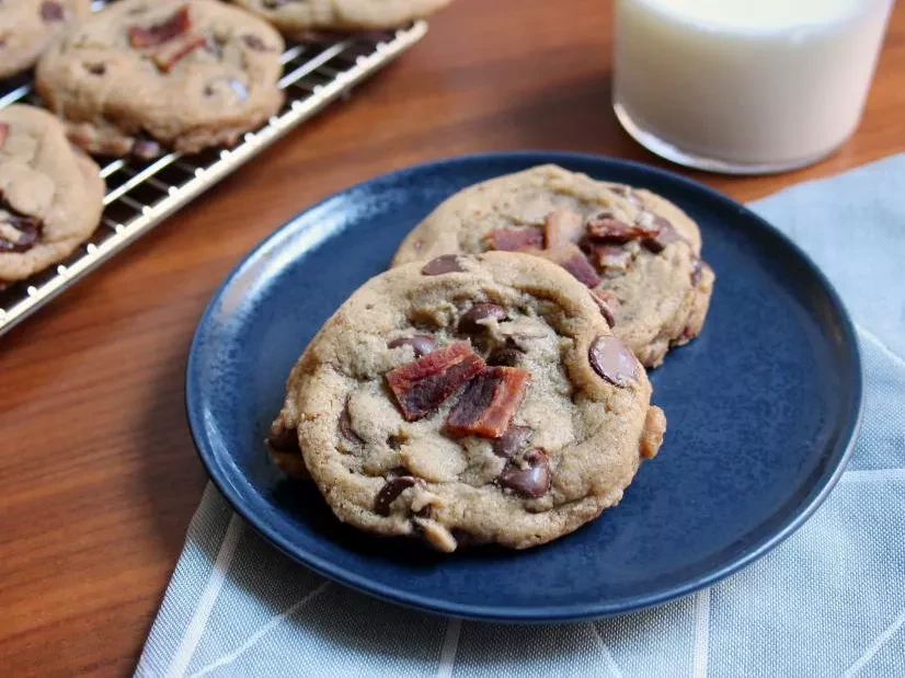 - Roughly chop 6 slices of the bacon to yield 1/2 cup. Add the chopped bacon and chocolate chips to the dough. Fold in with a rubber spatula, incorporating the streaks of flour and evenly distributing the bacon and chocolate chips. Refrigerate the dough 30 minutes to 4 hours.