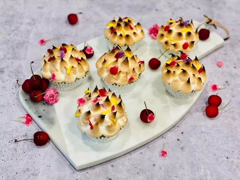- Preheat the oven to 260 degrees C and position a rack in the center of the oven. Place the cupcakes on a baking sheet. Place on the middle rack and bake until the meringue is browned and toasted, 5 to 6 minutes.