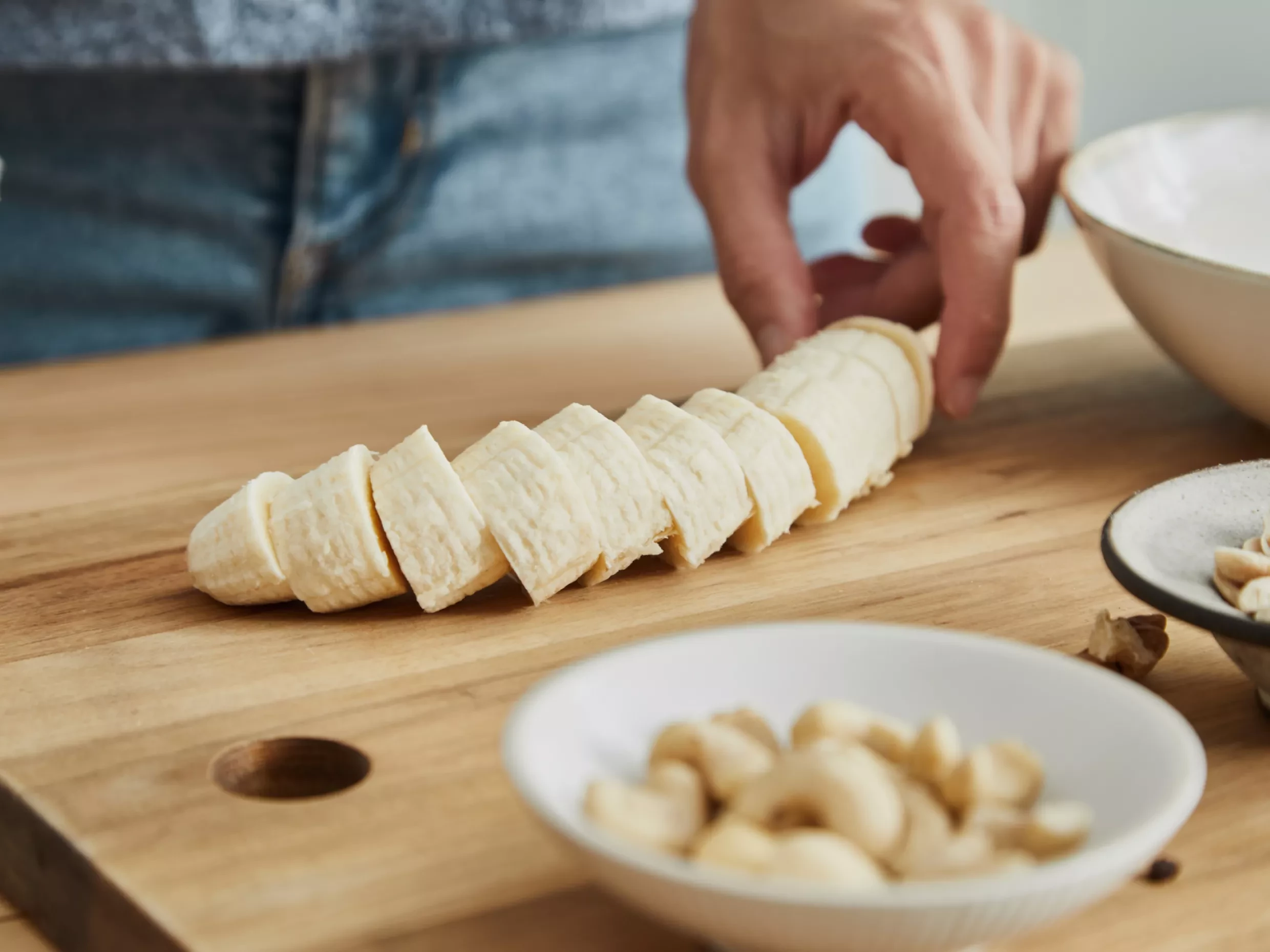 The heart of Mary’s banoffee cheesecake recipe is the balance of tangy dairy-free cream cheese, sweet coconut sugar, and fragrant vanilla extract. A splash of lemon juice adds a zesty kick, and the dessert perfection continues with a topping of sliced bananas, luscious lashings of homemade carefree caramel, and a sprinkle of plain dark chocolate.