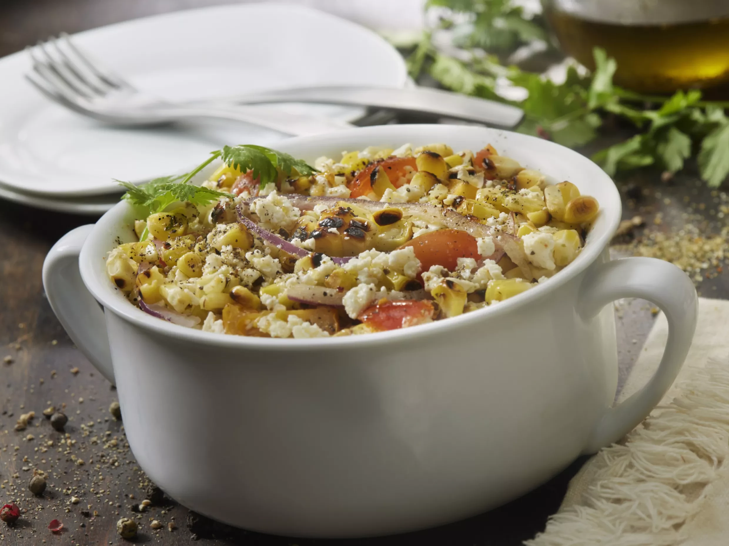 Fresh and zesty, this barbecued corn and tomato-sweet onion salad recipe is perfect for picnics, packed lunches, and summer BBQs.
