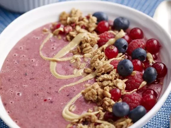 2. Tip into a bowl and top with berries and scatter with a handful of granola. Drizzle over a little extra cashew butter and serve.