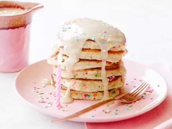 Cooking the pancakes over medium-low heat keeps them lightly golden so the confetti sprinkles really pop!
