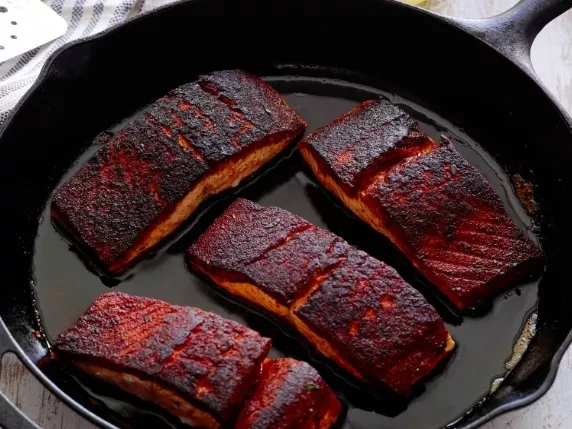In a small bowl, add the paprika, cayenne, thyme and oregano and salt and mix to blend. Put the mixture on a plate or other flat surface and coat the portions of salmon, 1 at a time, on the flesh side only.