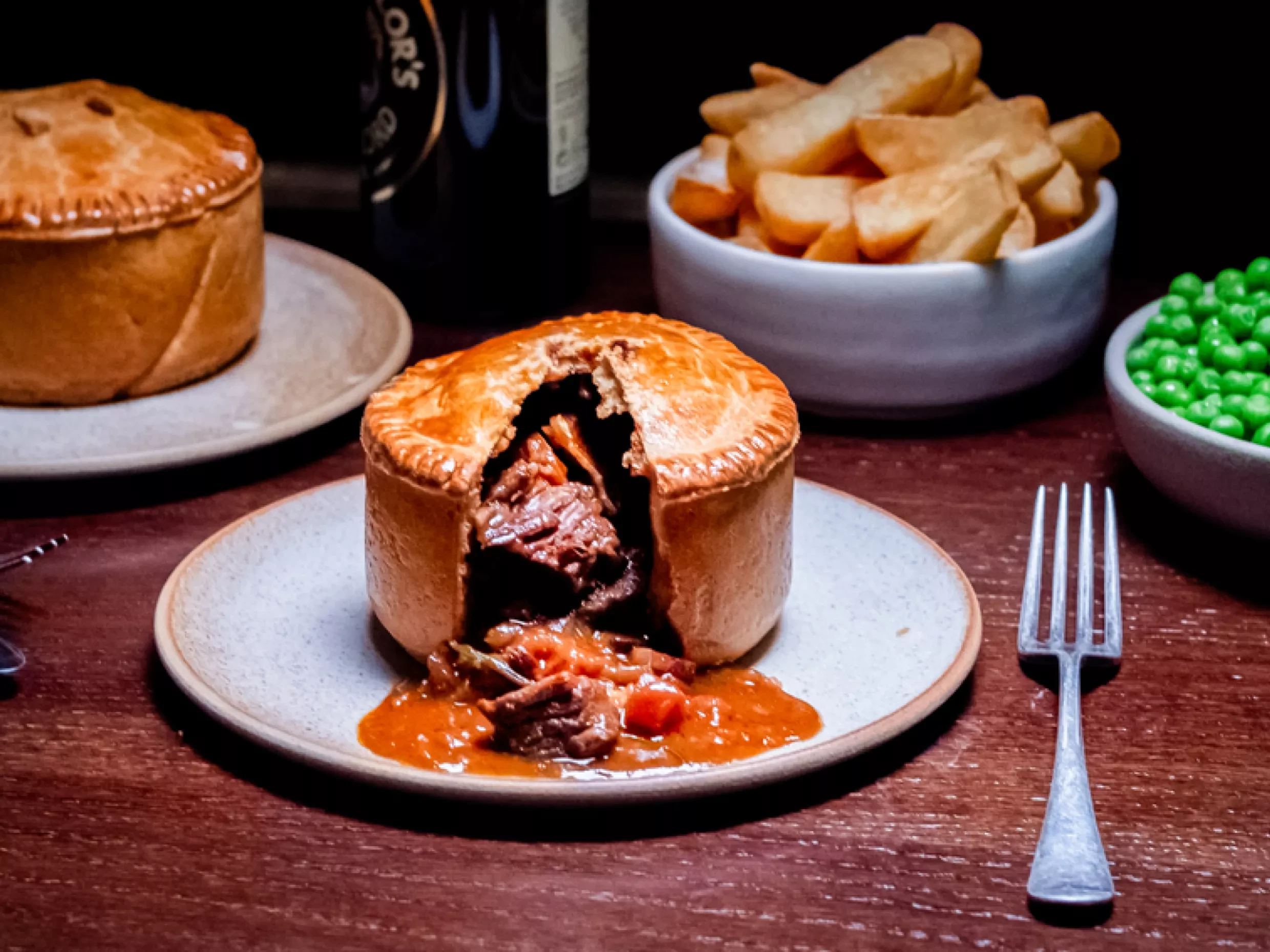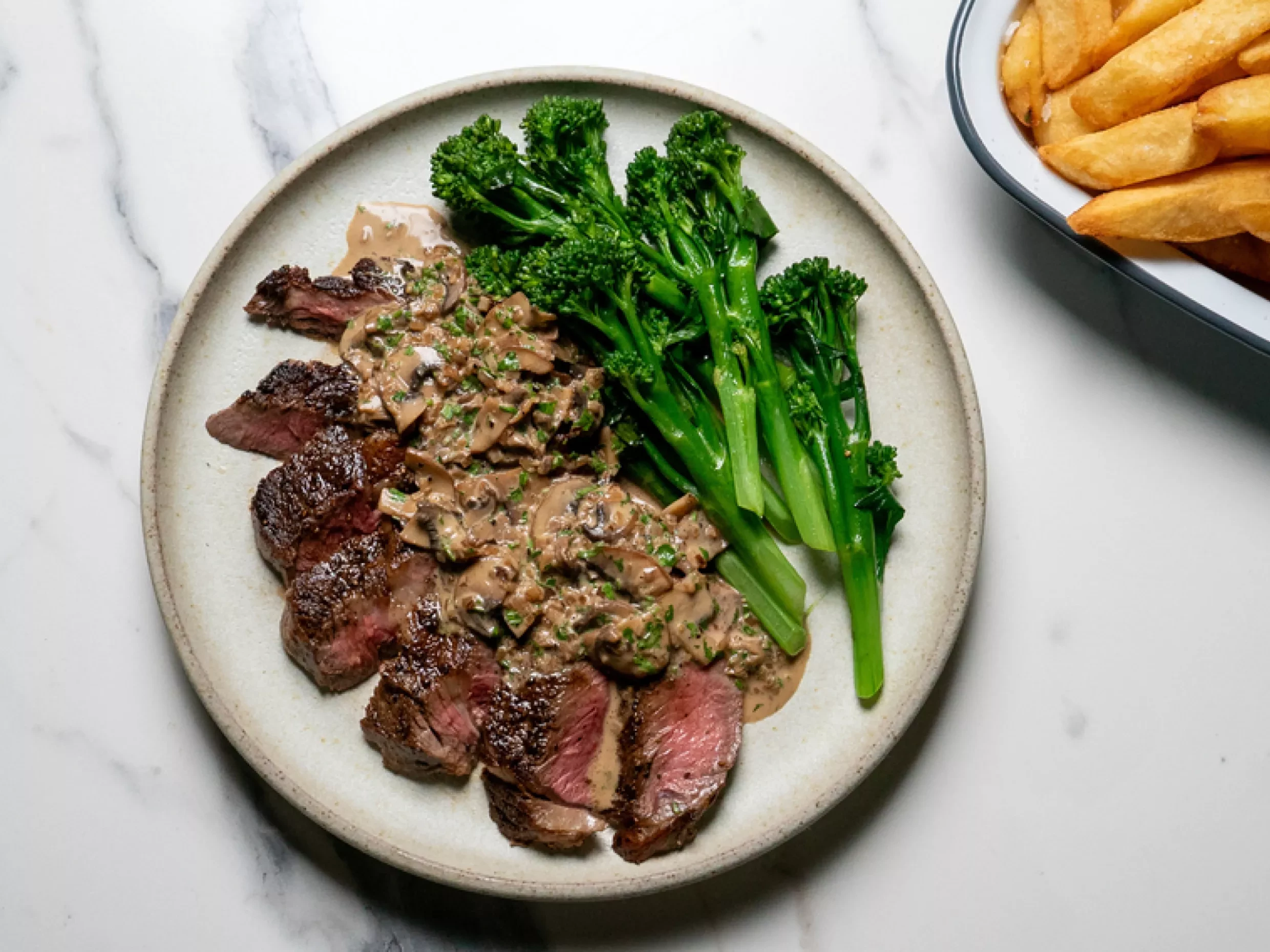 Pre-heat the oven to 180° (350°F), gas mark 4. Coat the steak with the flour, heat oil in a saute pan. Add the shallots and bacon and fry over a brisk heat until browned. Remove from the pan and place in a casserole dish. Add the meat to the pan and fry until browned on all sides. Then transfer to the casserole.