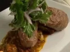 3) For the tomato bredie: Heat the oil in a large saute pan set over medium heat, and saute the onions until they're transparent. Add the pork and cook until brown. Add the tomatoes, potatoes, and chilli to taste. Cook, stirring occasionally, until the potatoes are tender and the tomato liquid is almost gone, about 20 mins.