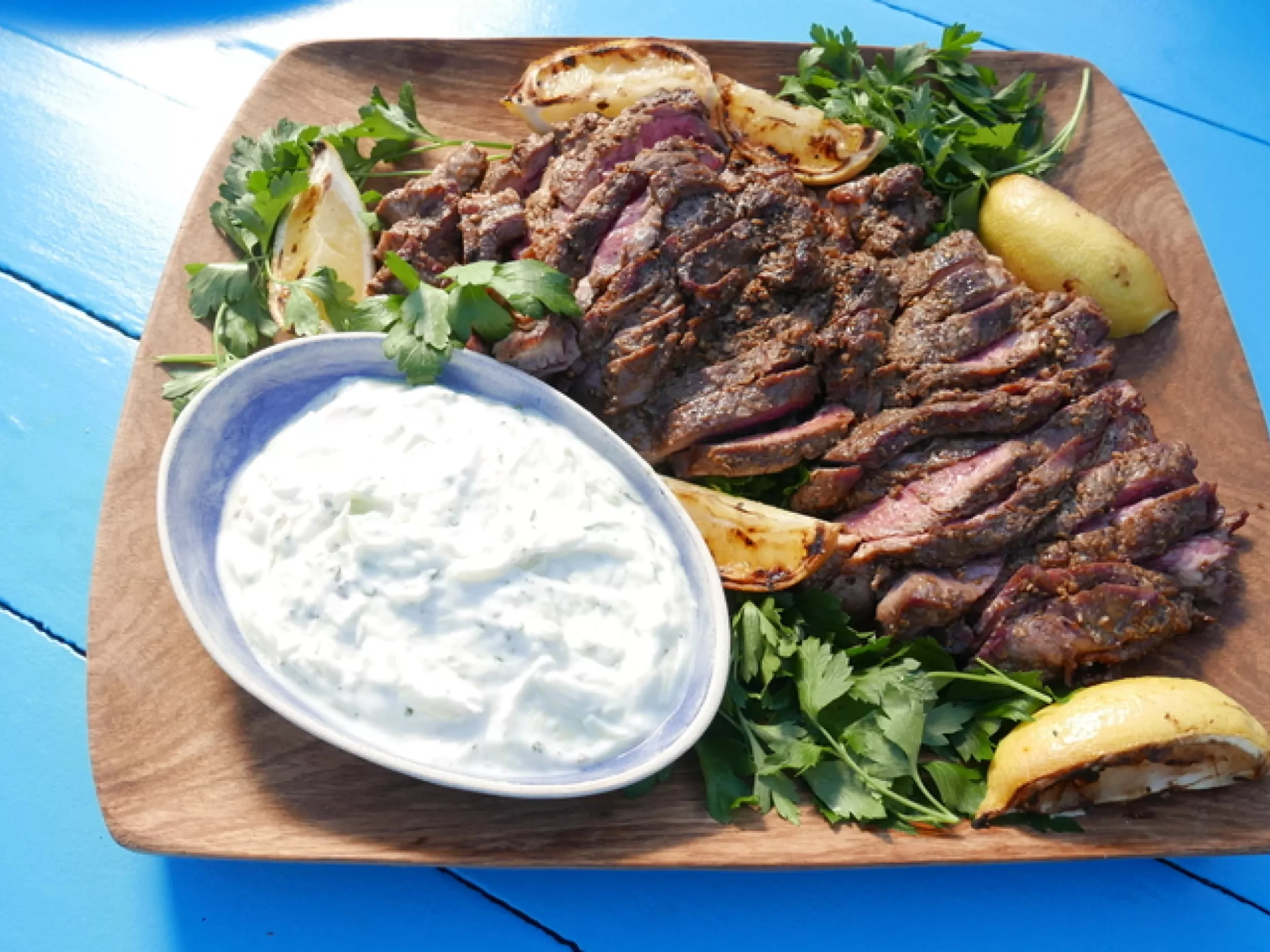 8. Carve and arrange on serving platter and garnish with parsley and grilled lemons