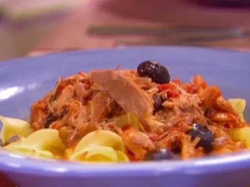Braised dark meat turkey over egg noodles