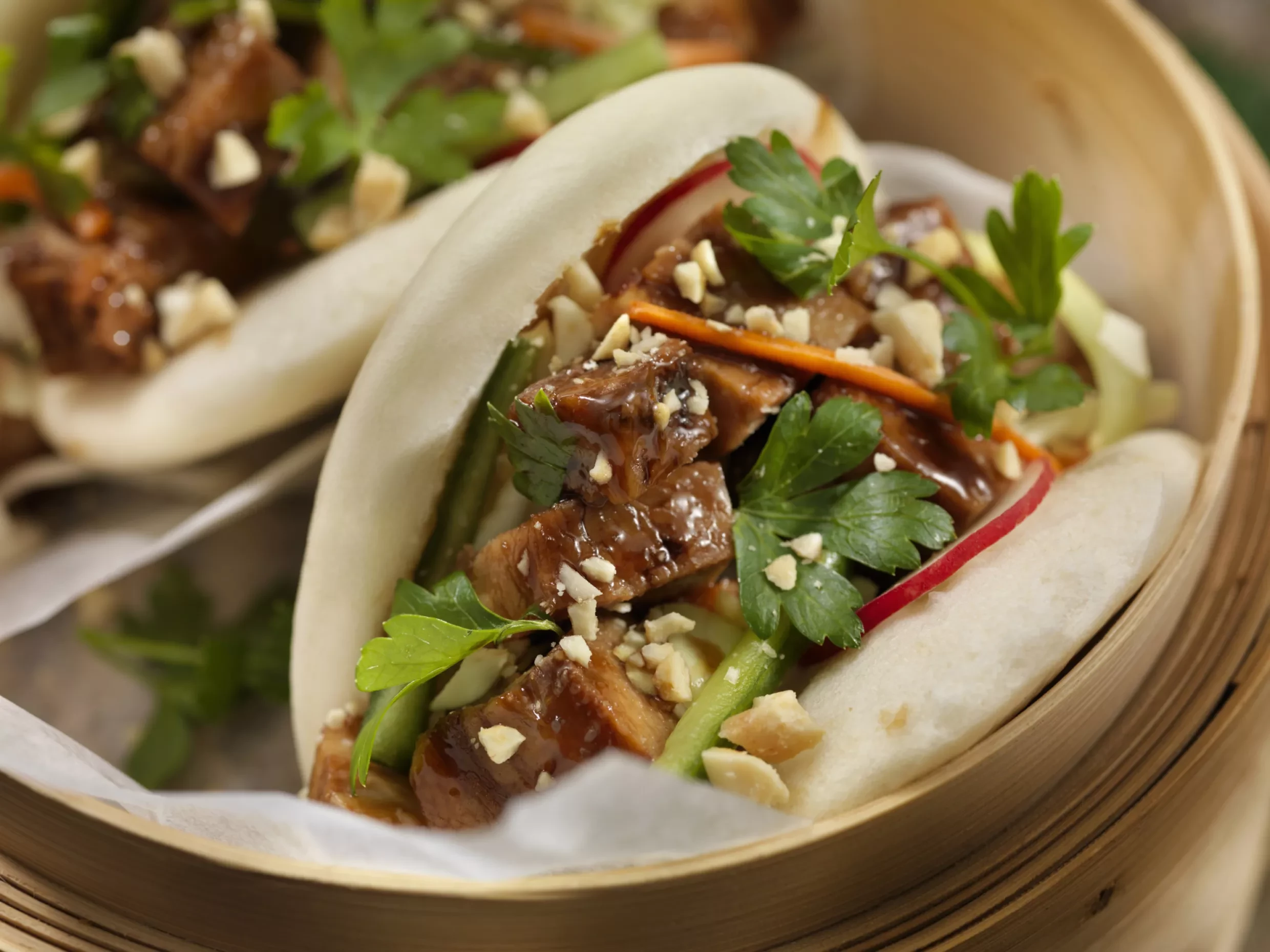 - Meanwhile, steam the bao buns according to the package directions.