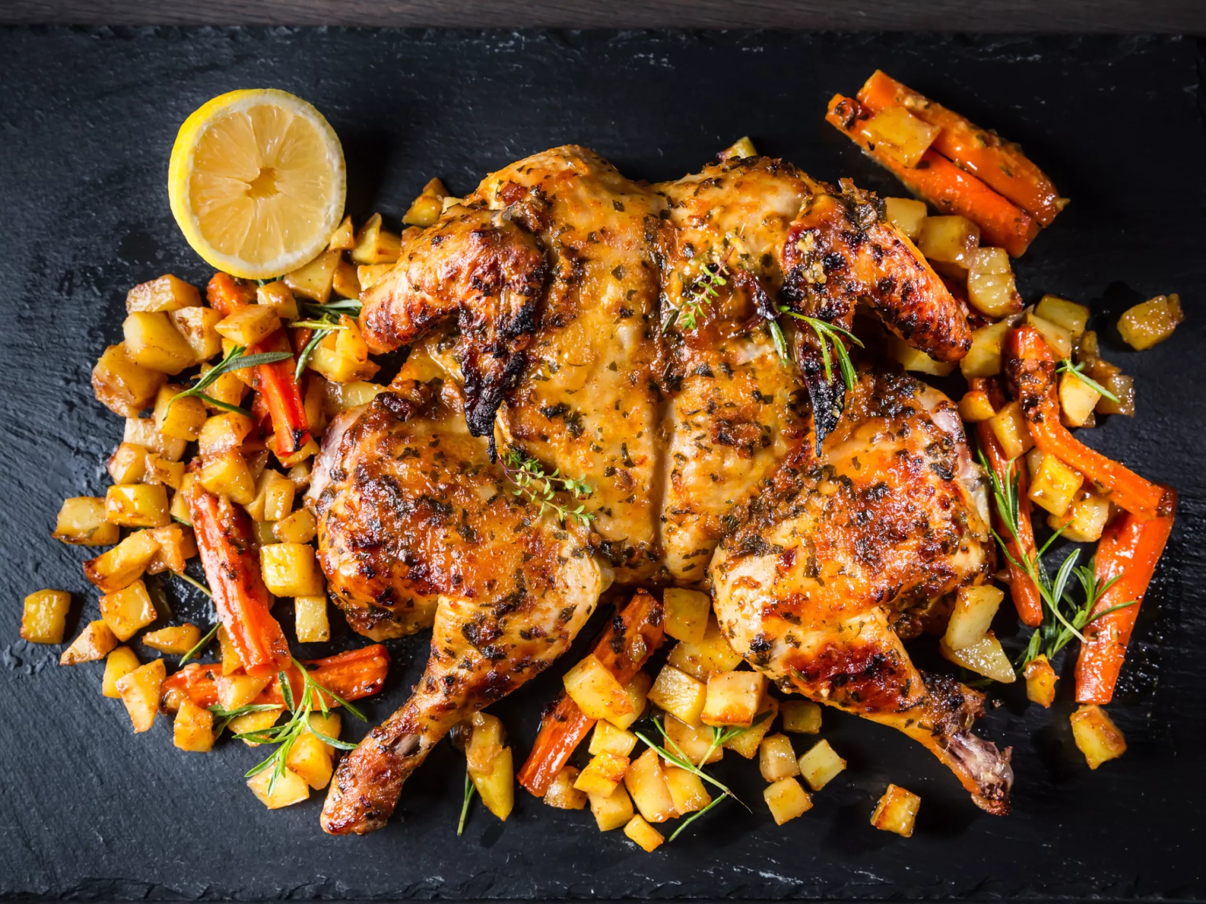 And there’s no need to wing it with sides. This butterflied chicken recipe is as versatile as it is impressive. Serve with grilled mixed vegetables for a celebration of summer, or go classic with crispy twice-cooked new potatoes with garlic aioli and a rocket chicory salad with a white wine vinaigrette. You can even take flight with a carrot and almond couscous and grilled za’atar flatbreads for the true taste of the Mediterranean.