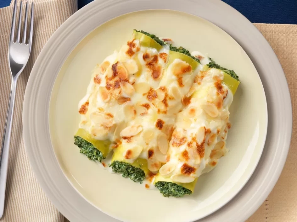 Cannelloni with Spinach, Cottage Cheese and Almonds