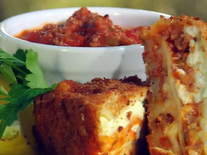 6. Butter the sides of the baking dish. To layer the lasagne, spoon a quarter of the meat sauce into the base of the dish. Top with a layer of lasagne sheets. Repeat this process one more time. Spread over the cheese burst mixture. You should have 4 layers of pasta in total, with the cheese burst layer in the middle. Sprinkle the top with torn mozzarella and Parmesan and drizzle over some olive oil.